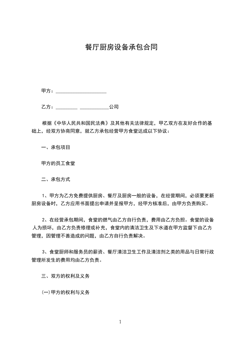根据《中华人民共和国民法典》及其他有关法律规定,甲乙双方本着诚实信用原则就餐馆承包事宜经共同协商,订立以下条款共同遵守: