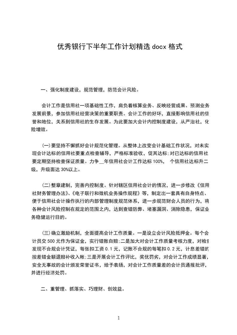 (三)确立激励机制,全面提高会计工作质量。一是设立会计风险抵押金。每个会计员交500元作为保证金,实行错账自赔;二是加大对会计工作质量考核力度,对检查发现不合规会计凭证,每张扣工资0.1元,记账不合规的每笔扣0.2元,计息差错的按差错金额退赔补收入帐;三是开展会计工作评比,奖优罚劣,对会计工作成绩显著,安全无事故的会计颁发荣誉证书,给予表扬,对会计工作质量差的会计员通报批评,并进行经济处罚。