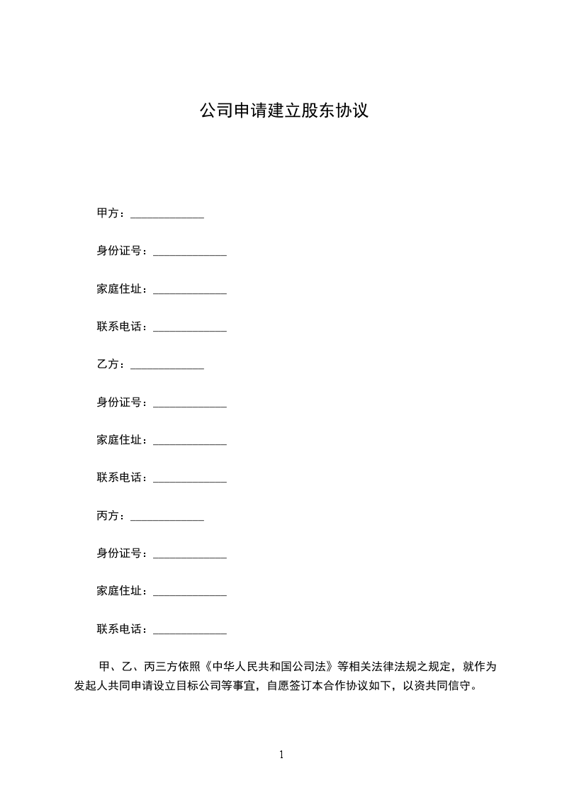 ******有限公司(以下简称****)于20 *_____年_____月_____日正式注册成立。法定代表人:***,注册资金为人民币:伍拾万元整(¥:500000.00元)。****是由***、***、***三位股东合资创办,股东***:占股份总额的34%;股东***:占股份总额的33%;股东***:占股份总额的33%。