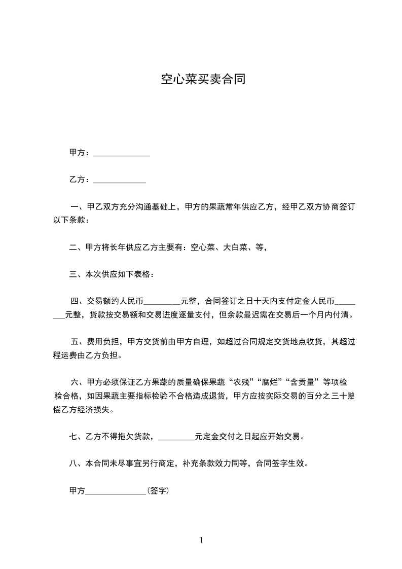 二、甲方将长年供应乙方主要有:空心菜、大白菜、等,