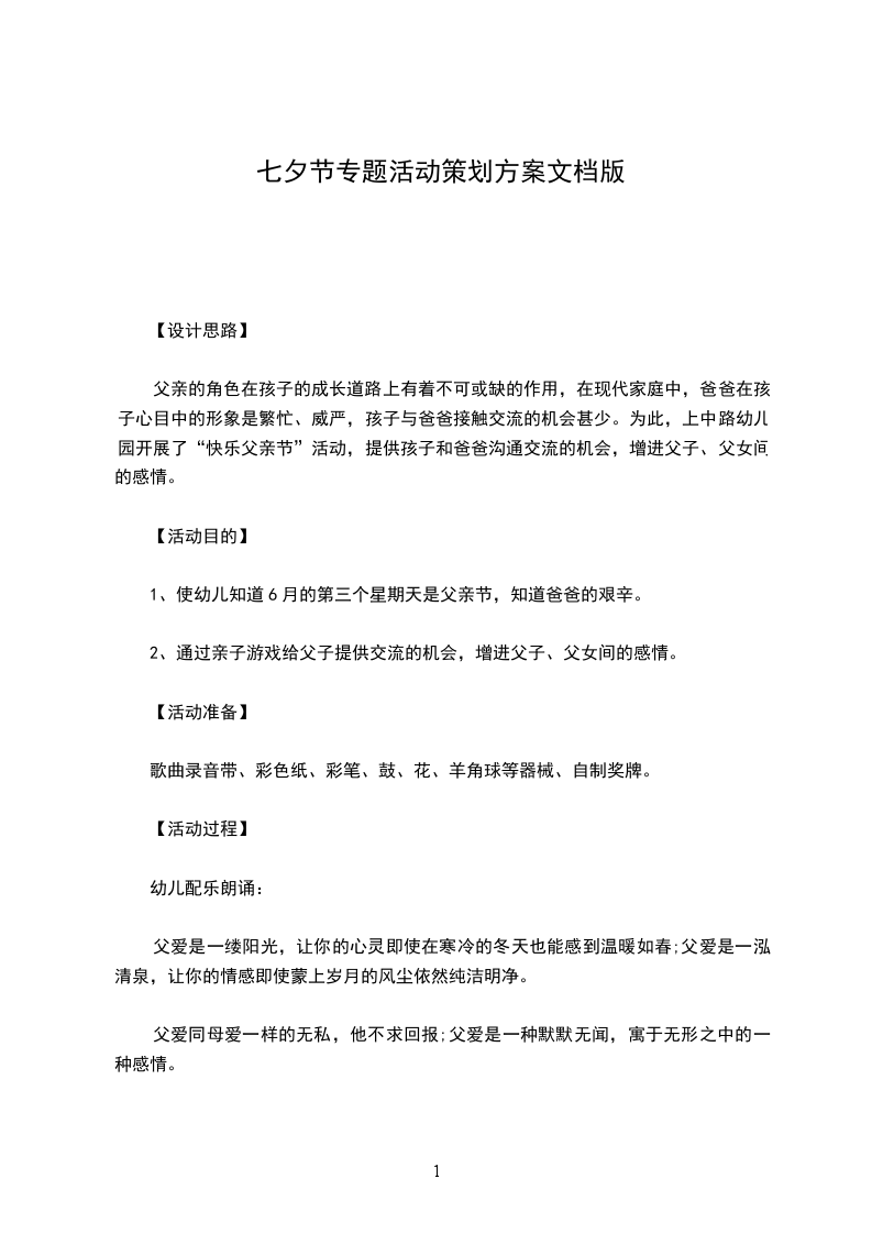 1、使幼儿知道6月的第三个星期天是父亲节,知道爸爸的艰辛。