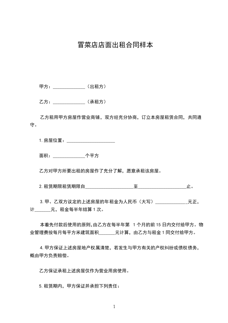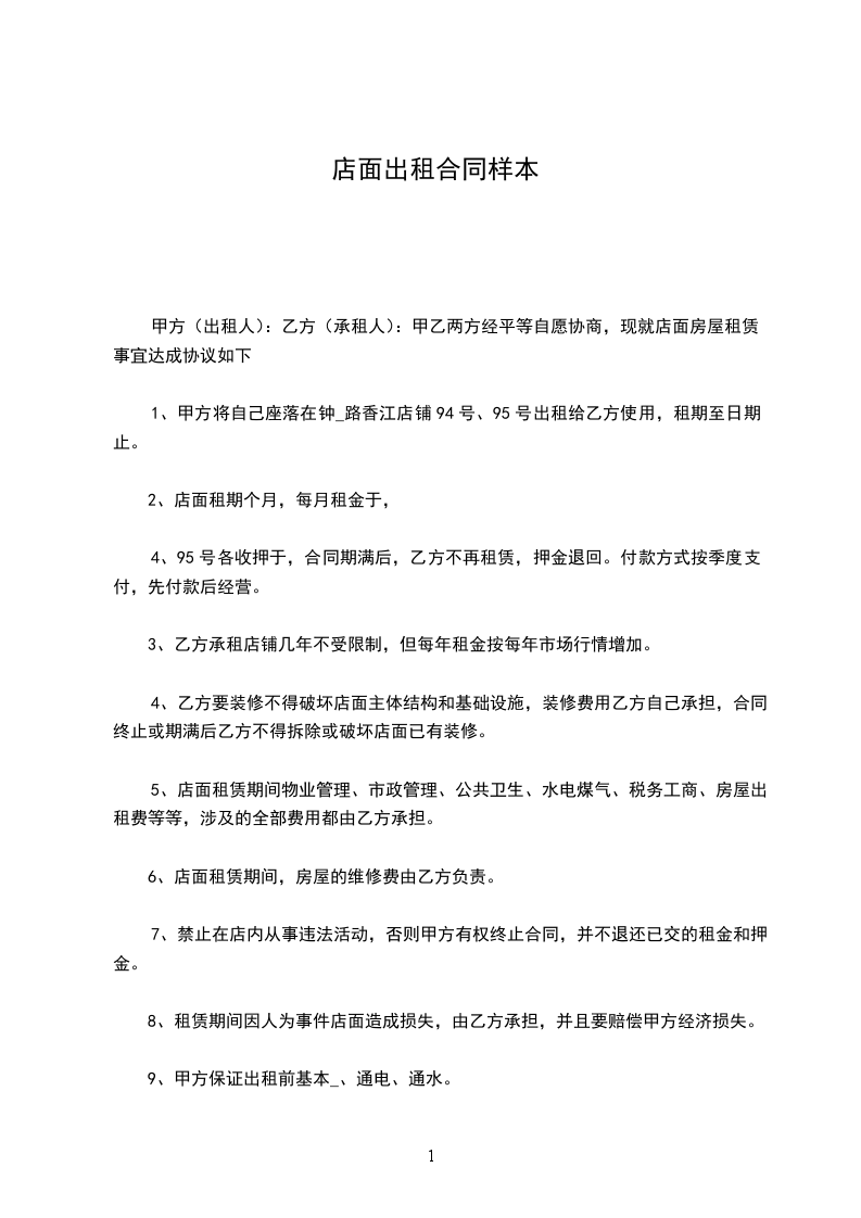 2、甲方必须保证出租给乙方的门面能够从事商业经营。合同期内不得将乙方租用的门面转租(卖)给任何第三者;或在租赁合同期内房租加价。 3、租赁期内,保证水电落户。