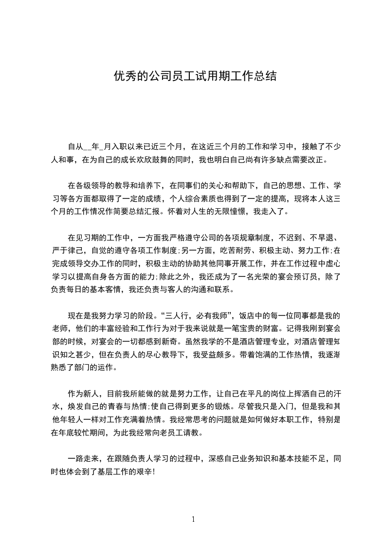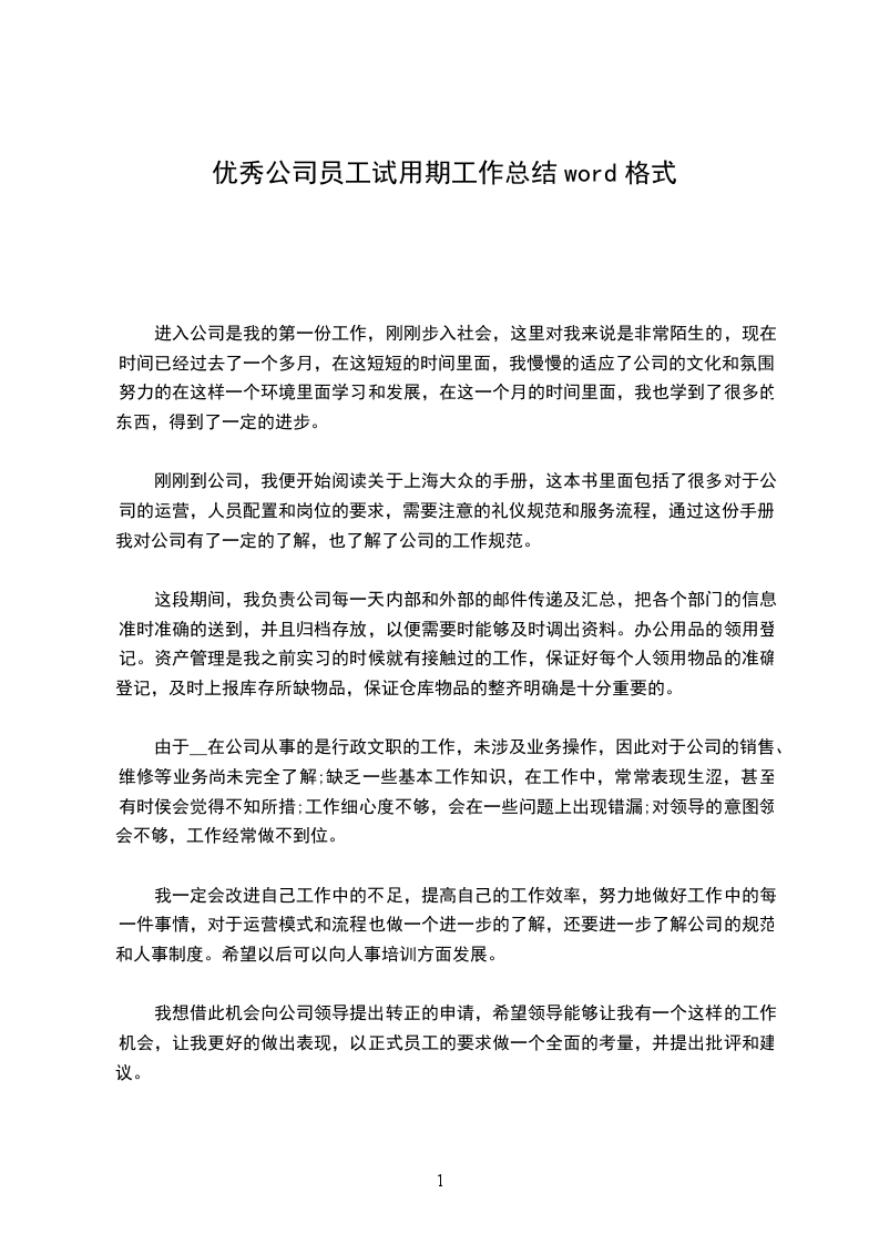 记得初到公司时,我对公司的了解仅仅局限于公司网站的简单介绍,除此之外,便一无所知了,试用期工作总结《员工试用期工作总结》。所以,试用期中如何去认识、了解并熟悉自我所从事的行业,便成了我的当务之急。