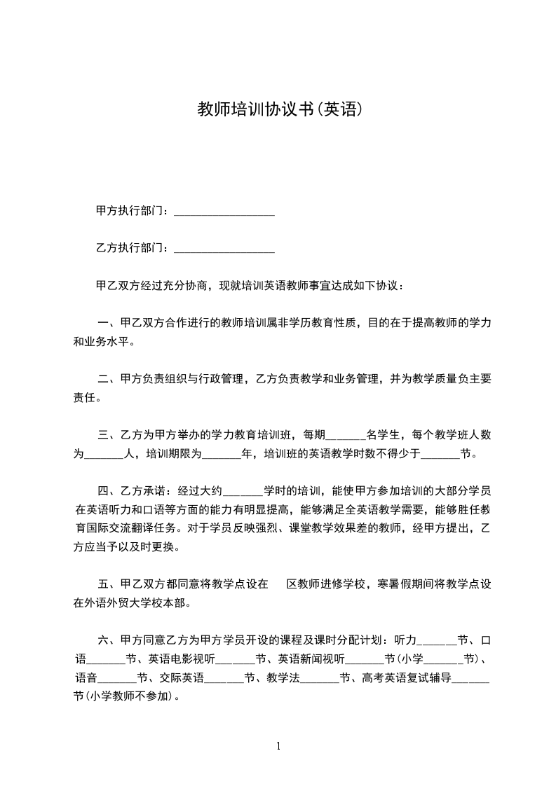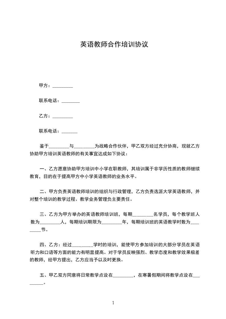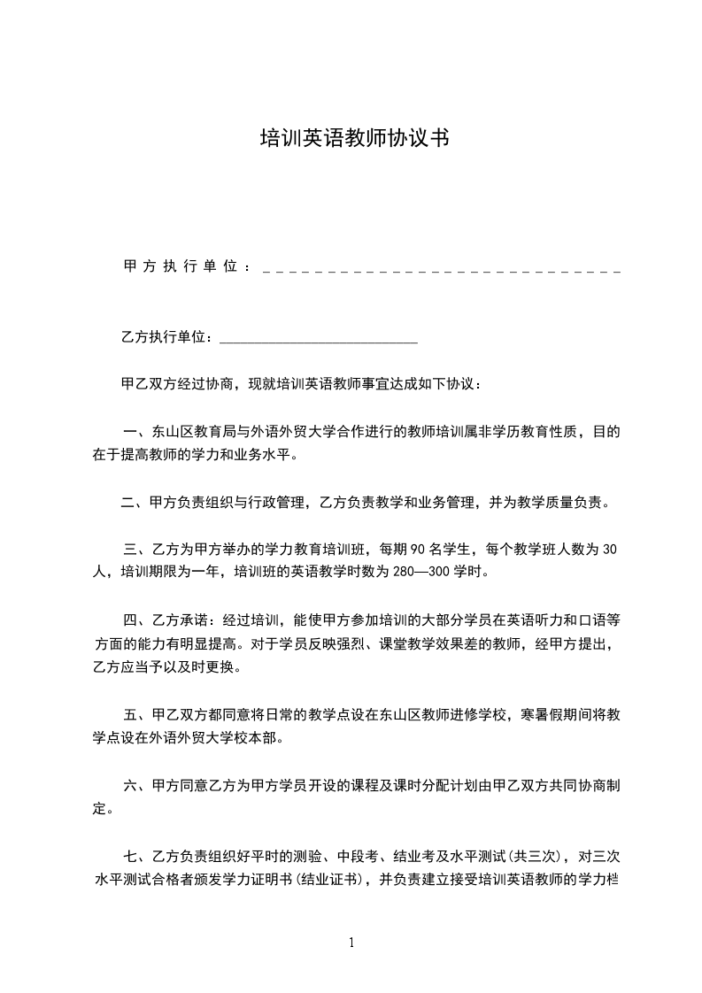 甲乙双方经过充分协商,现就培训英语教师事宜达成如下协议: