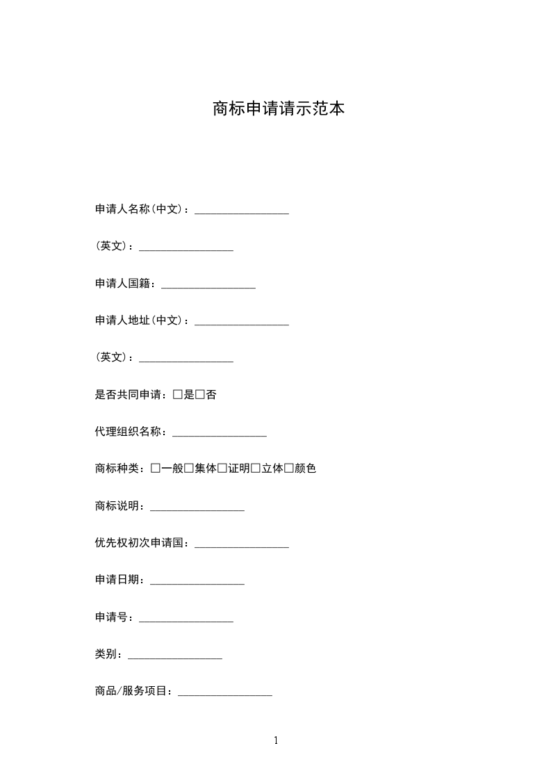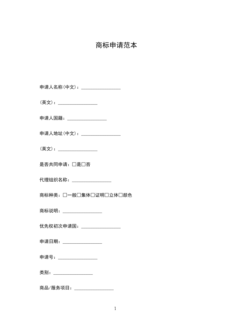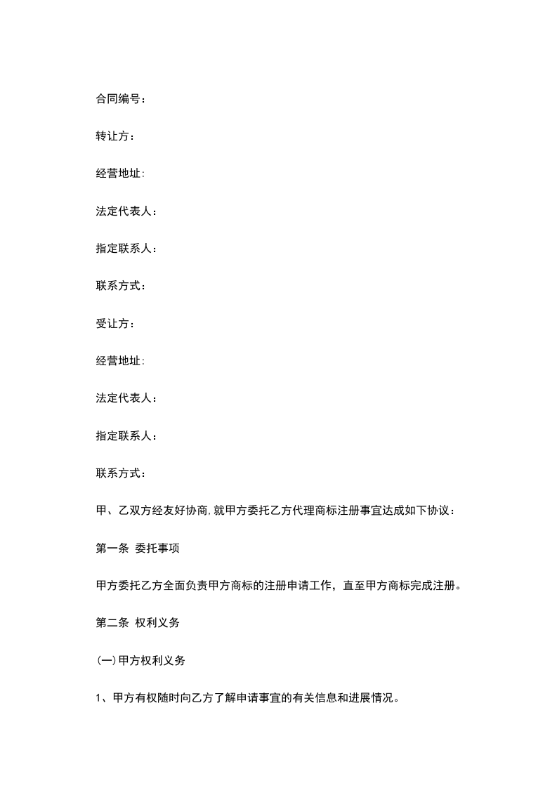 一、甲方委托乙方办理以下商标注册申请事务:_________________