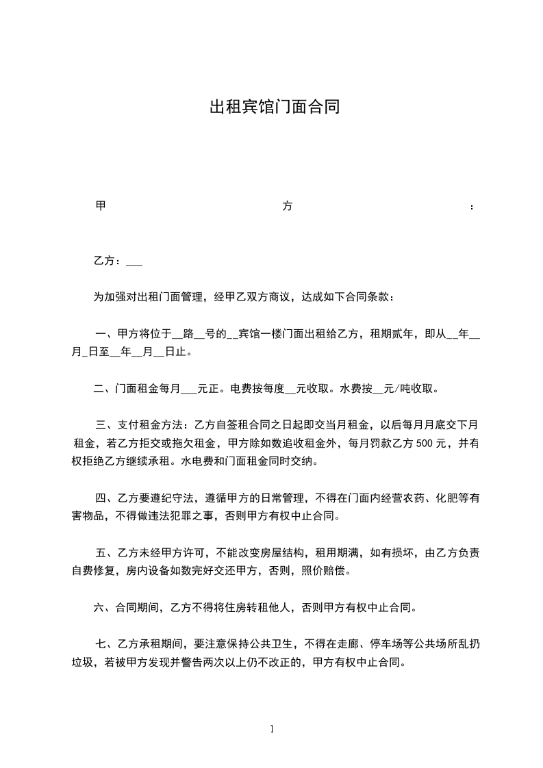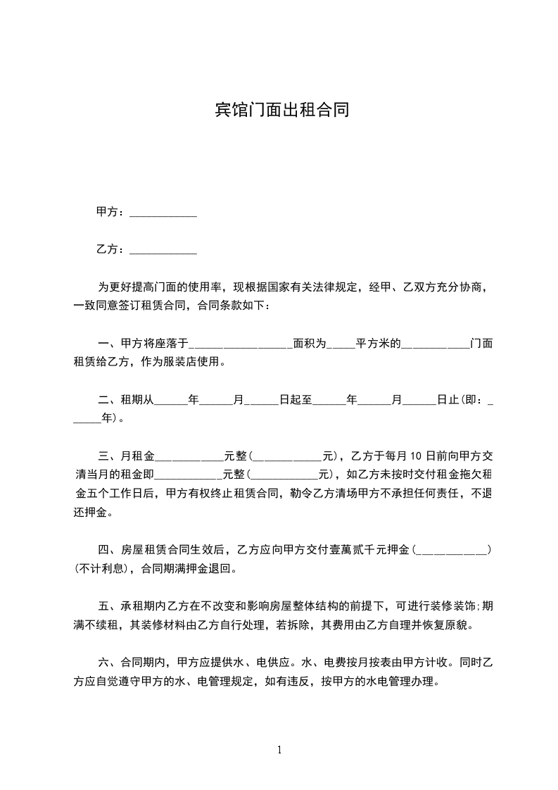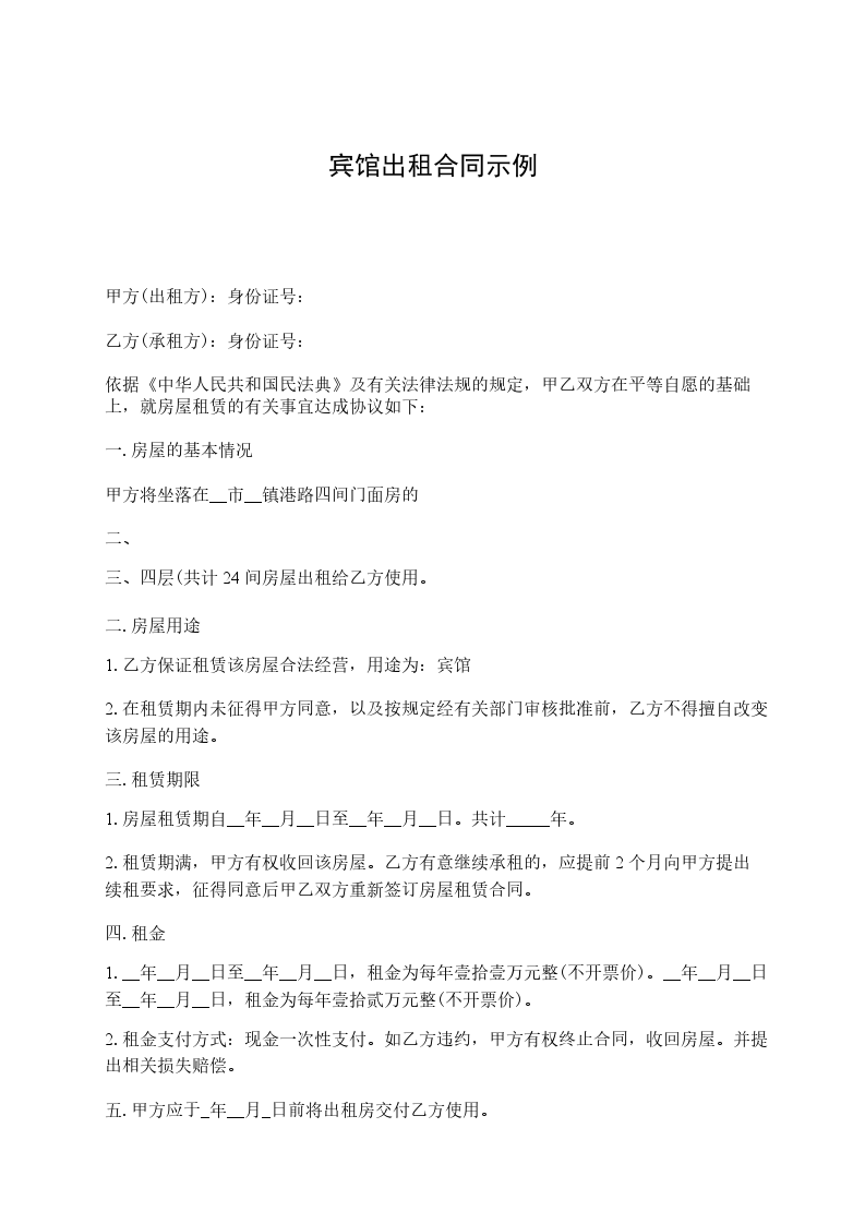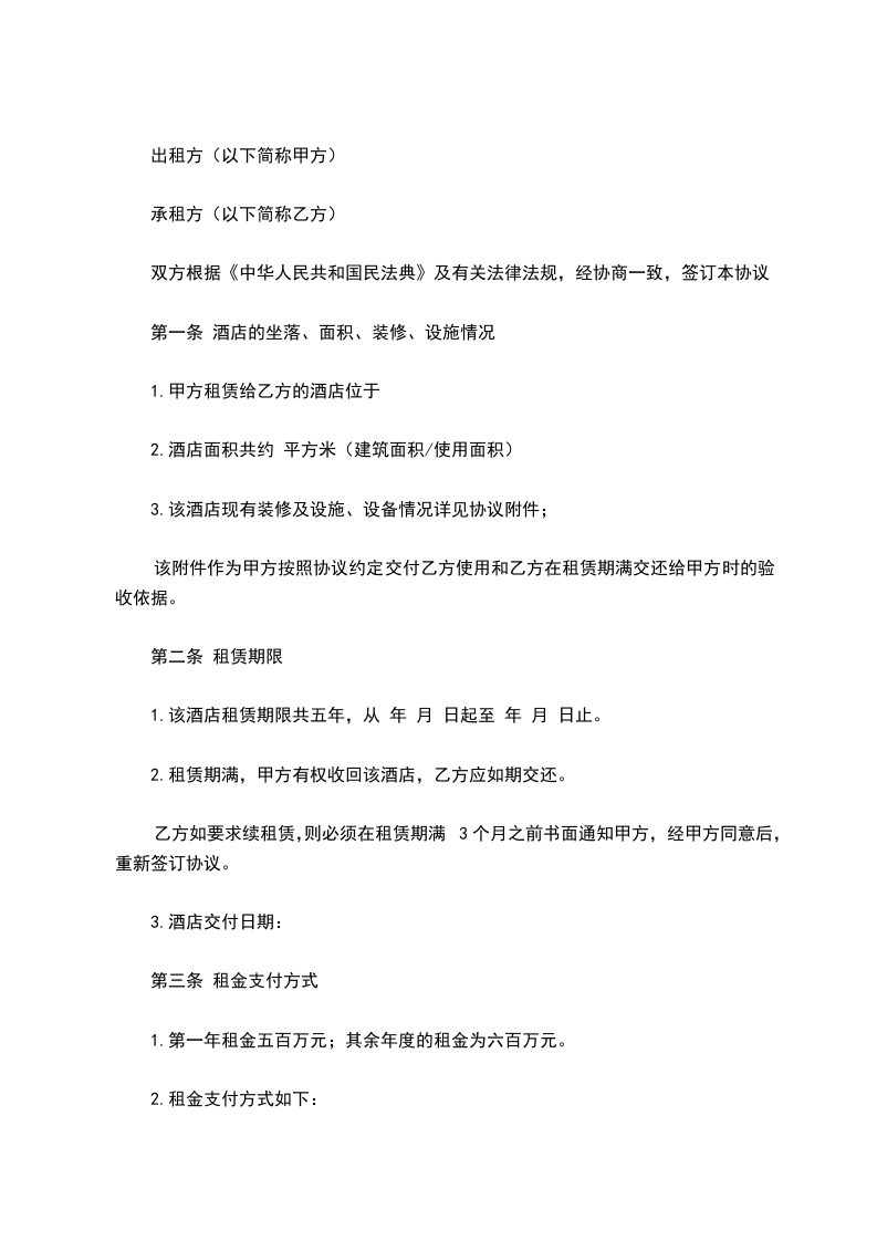 1.该酒店租赁期限共五年,从 年 月 日起至 年 月 日止。