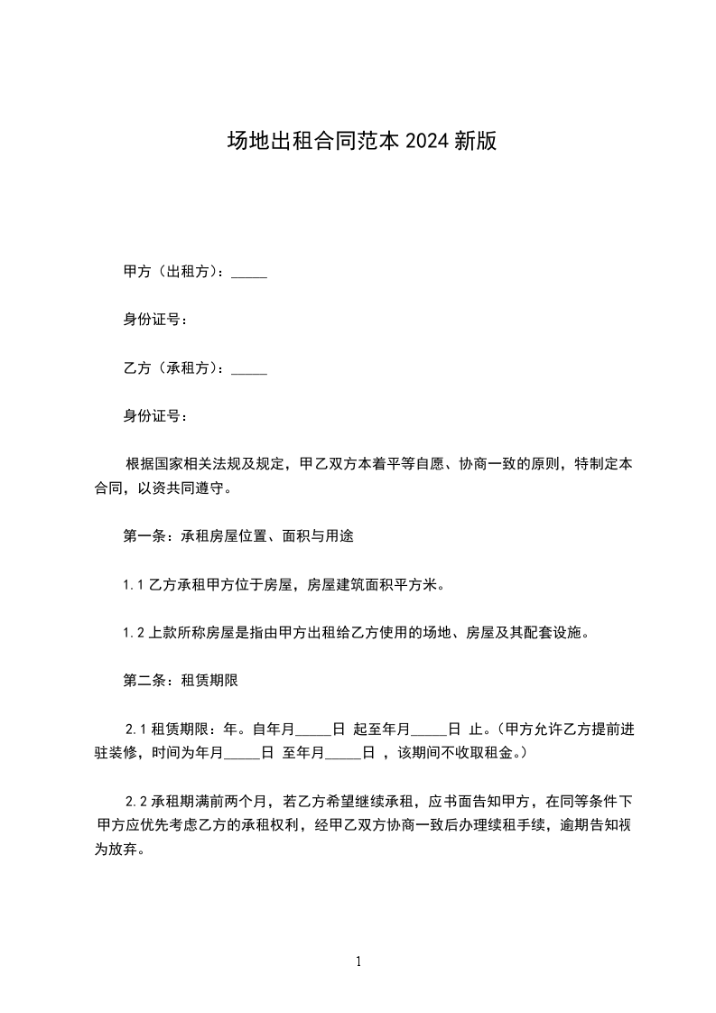 1.2上款所称房屋是指由甲方出租给乙方使用的场地、房屋及其配套设施。