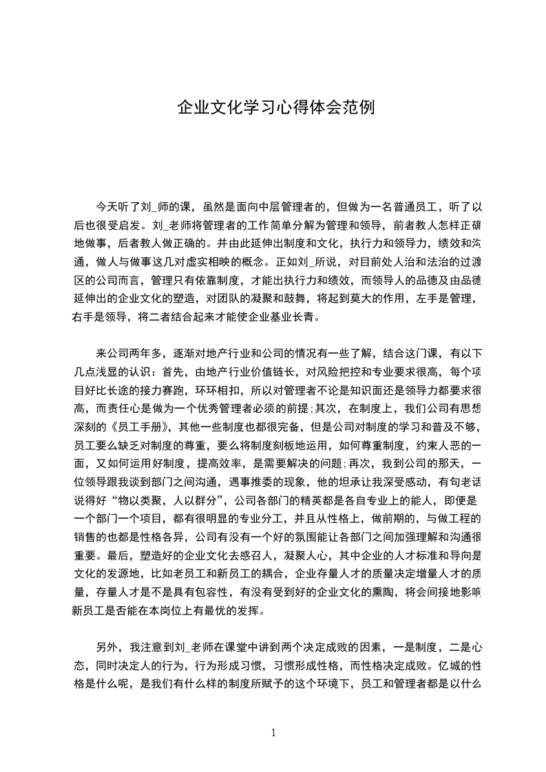 创新、超越、团结、务实这是____公司的企业文化的一种体现,以服从组织、团队合作、责任敬业、诚实守信和自我批判等的企业价值观和文化为依据,这种文化与管理,是公司发展过程中多年经验的积累与沉淀,是____公司人集体智慧的结晶。