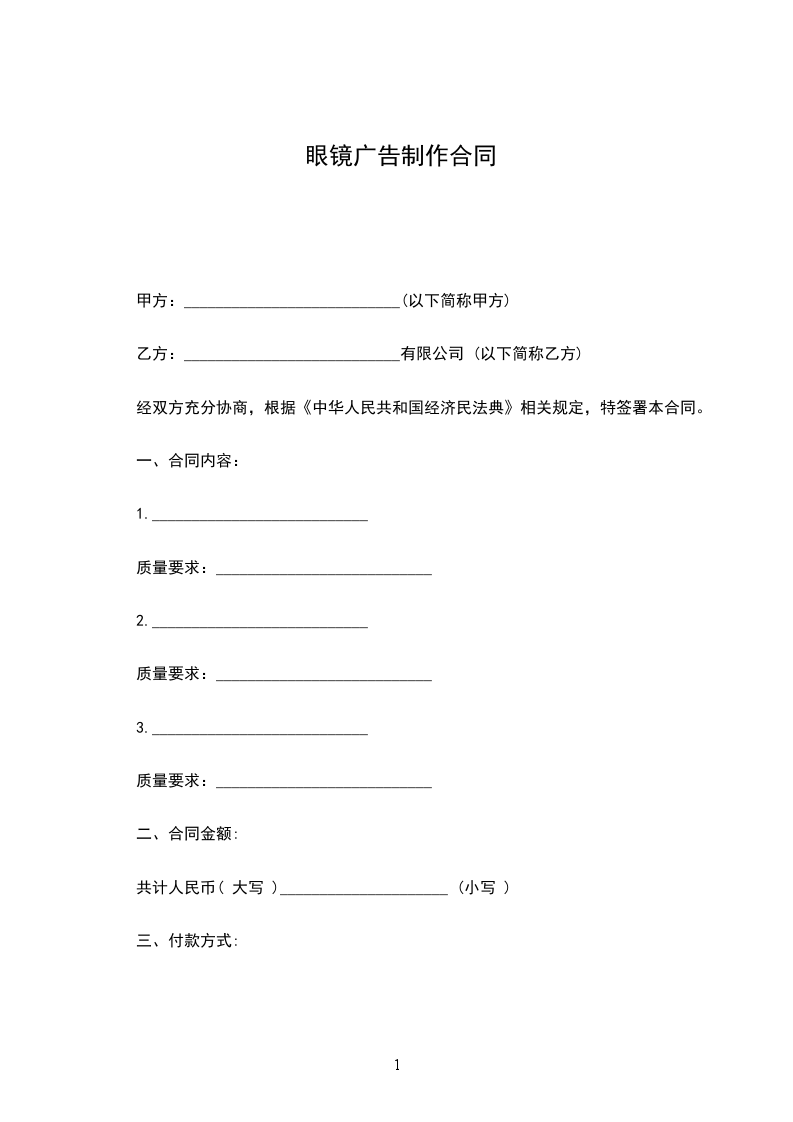 1、本合同签订后,甲方支付合同总额的50%,即人民币¥___________元( 大写:_____________________ 元整)。