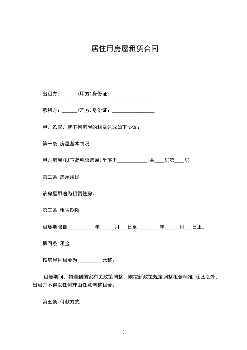 1.该房屋月租金人民币 ____元整(小写:____ 元),按 支付,当期租金人民币 元整(小写:____ 元),乙方在上次所缴租金期满前15日向甲方支付下期租金。