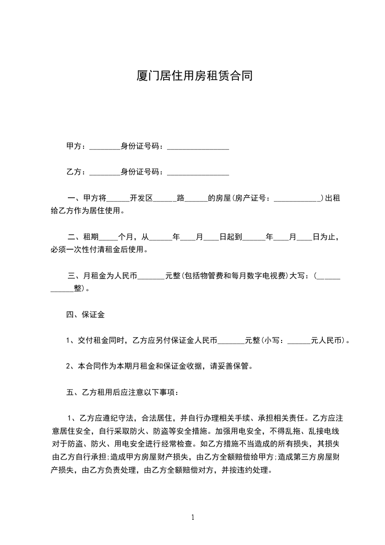 2.合同签订之日,乙方应向甲方支付人民币_____ 元整(小写: 元)作为租赁保证金,租赁期满时乙方如不再续租,且乙方无任何违约行为时,甲方将该保证金全部无息退还给乙方。