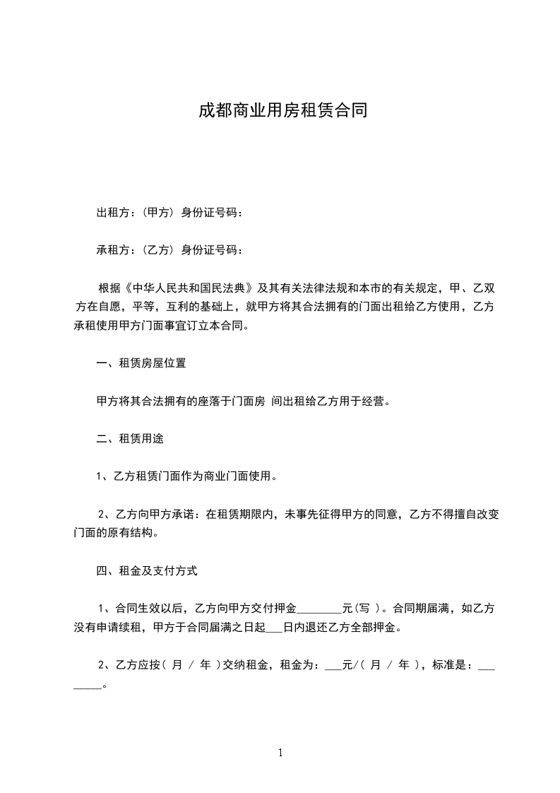 承租方:(乙方) 身份证号码: