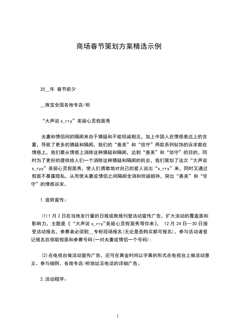 (1)1月2日在当地发行量的日报或晚报刊登活动宣传广告,扩大活动的覆盖面和影响力,主题是《“大声说s_rry”美丽心灵假面秀等你来》,12月24日—30日接受活动报名,参赛者必须到__专柜现场报名(无论是否购买都可报名),参与活动者登记报名后领取假面和参赛号码(一对夫妻或情侣一个号码);