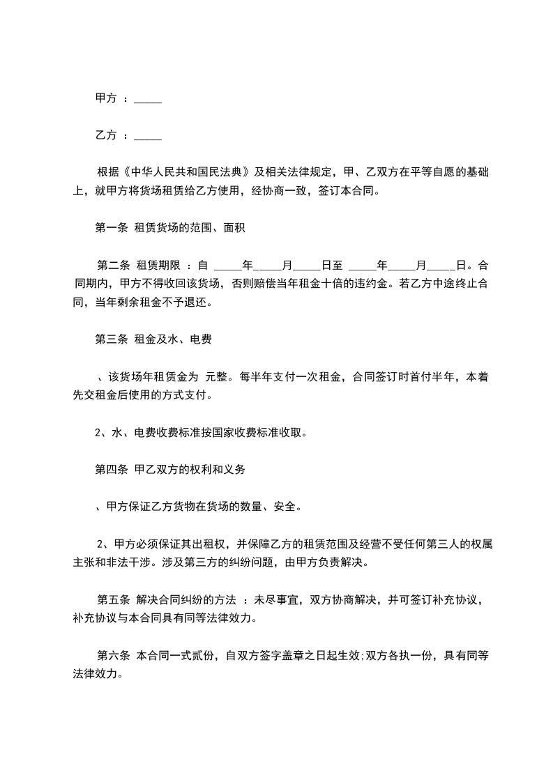 第八条甲方交付使用场地时,向乙方收取一个月的场地使用费作为保证金,合计人民币______元。保证金在乙方离场后的下一个水电费结算日可以结清水电费时一并结算,结算时只退本金,不计利息。