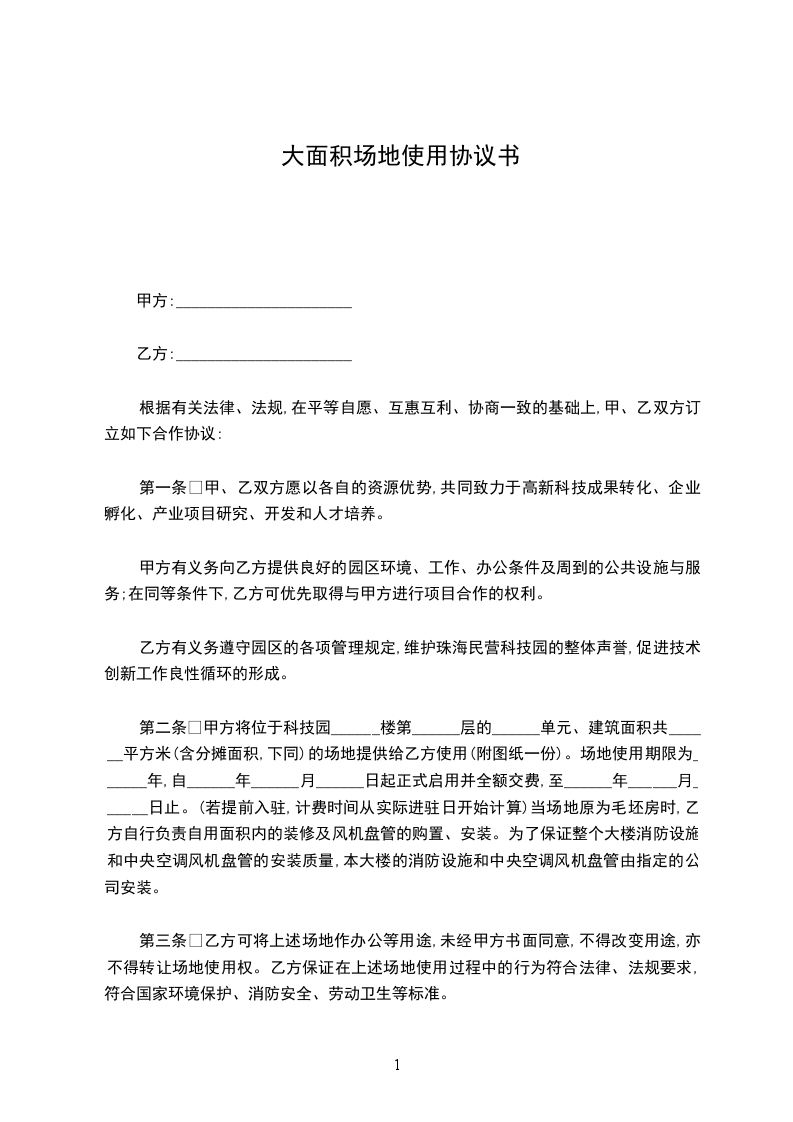 第二条甲方将位于科技园______楼第______层的______单元、建筑面积共______平方米(含分摊面积,下同)的场地提供给乙方使用(附图纸一份)。场地使用期限为______年,自______年______月______日起正式启用并全额交费,至______年______月______日止。(若提前入驻,计费时间从实际进驻日开始计算)当场地原为毛坯房时,乙方自行负责自用面积内的装修及风机盘管的购置、安装。为了保证整个大楼消防设施和中央空调风机盘管的安装质量,本大楼的消防设施和中央空调风机盘管由指定的公司安装。