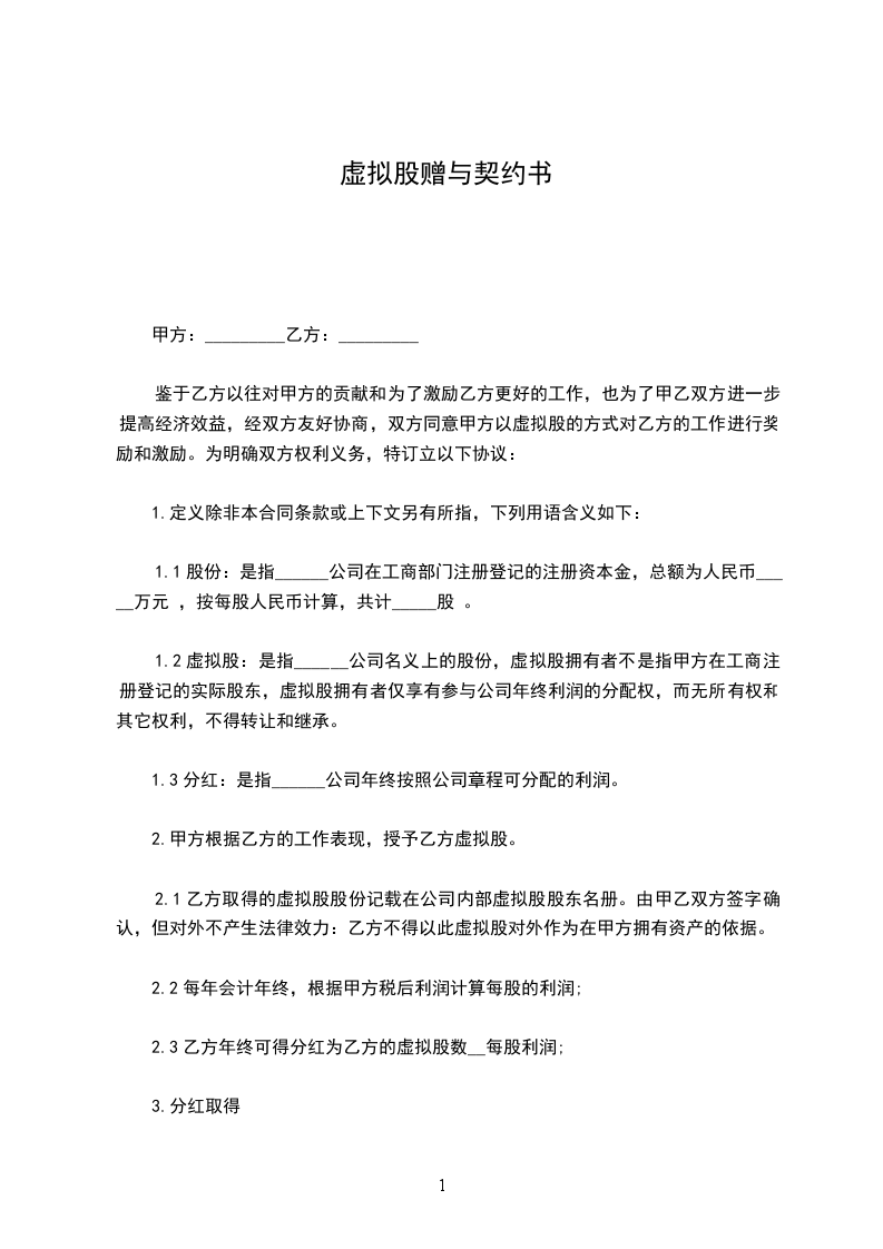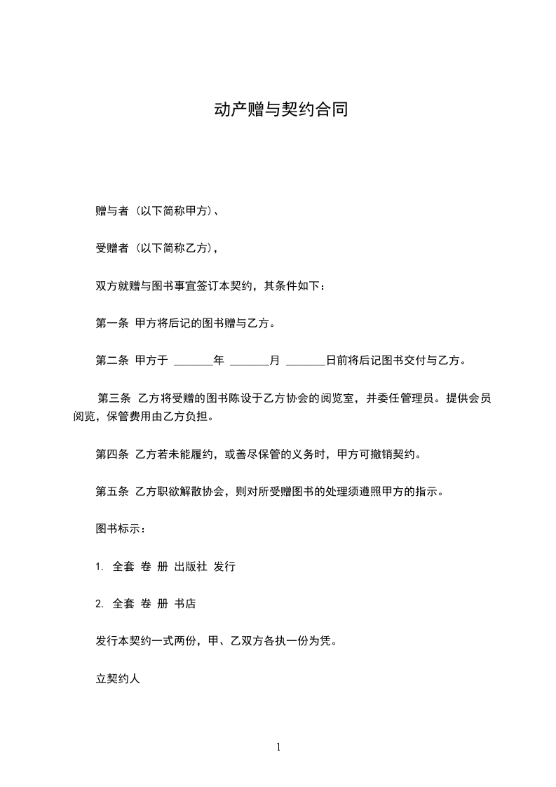 赠与人 __________________(以下简称甲方)、受赠人__________________ (以下简称乙方),双方议定下列赠与事宜,其条件如下: