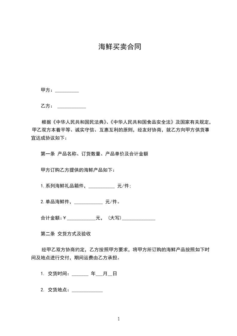 根据《中华人民共和国民法典》、《中华人民共和国食品安全法》及国家有关规定,甲乙双方本着平等、诚实守信、互惠互利的原则,经友好协商,就乙方向甲方供货事宜达成协议如下:
