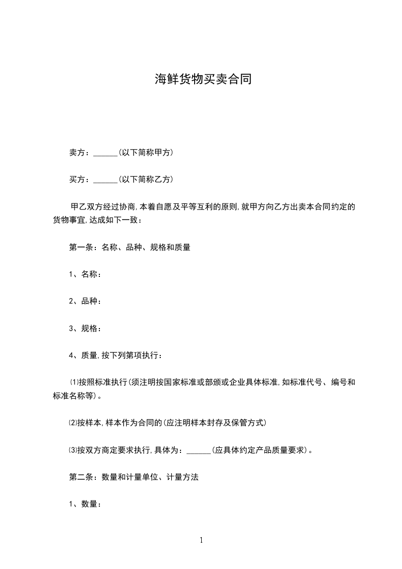 1. 乙方逾期交货的,应按照逾期交货金额每日万分之____计算,向甲方支付逾期交货的违约金。如逾期超过____日,甲方有权终止协议。