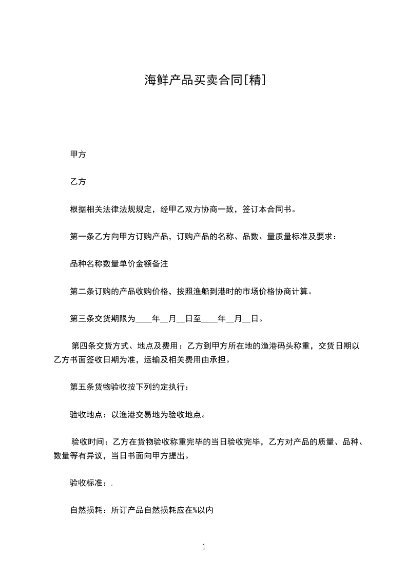 甲方订购乙方提供的海鲜产品如下: