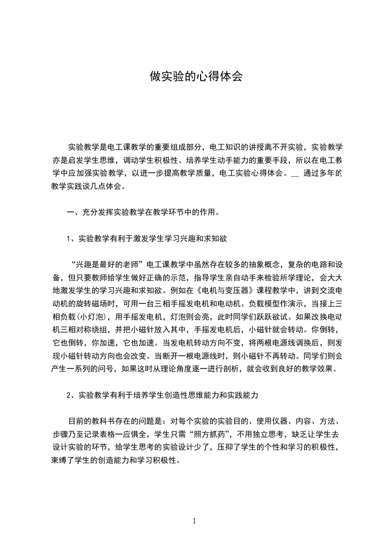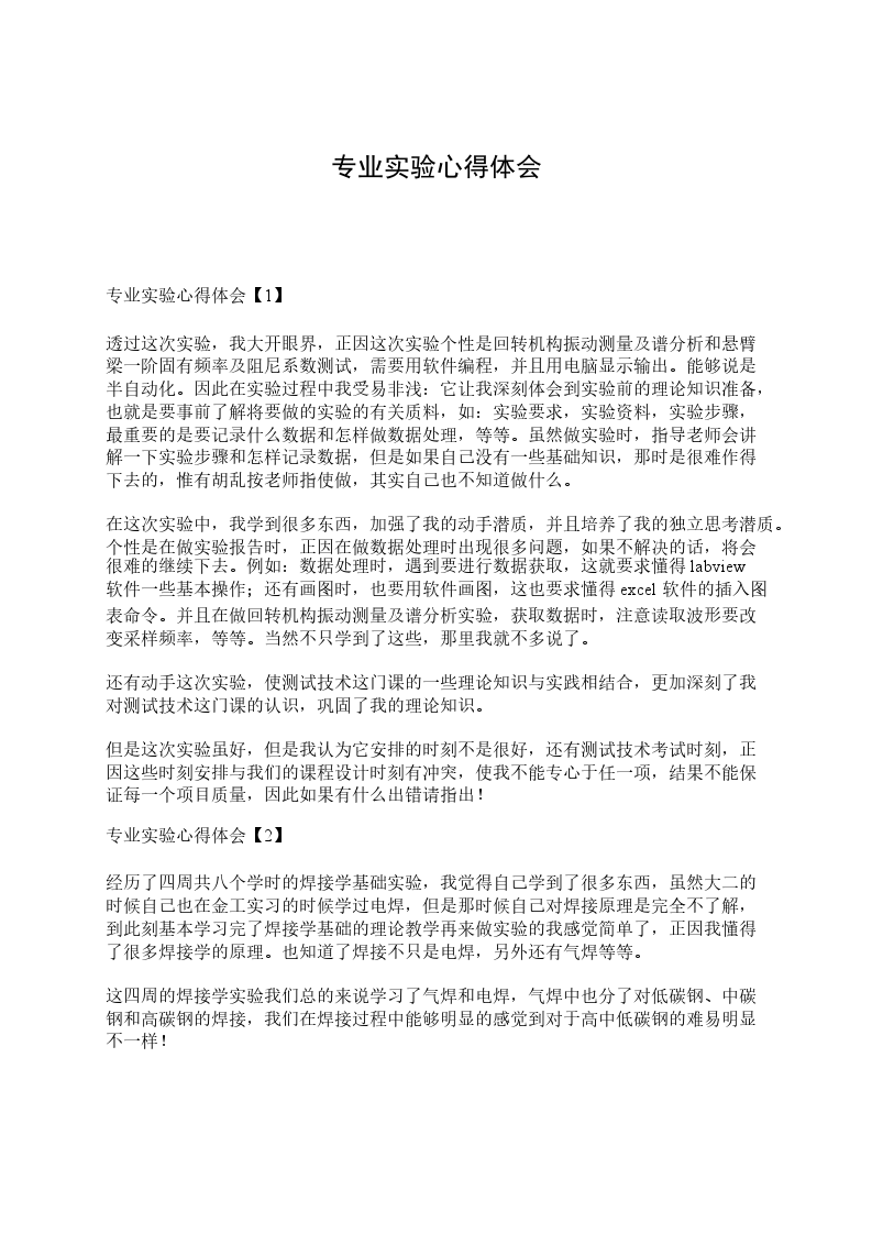 专业实验心得体会【3】化学是一门以实验为基础与生活生产息息相关的课程。化学知识的实用性很强,因此实验就显得十分重要。