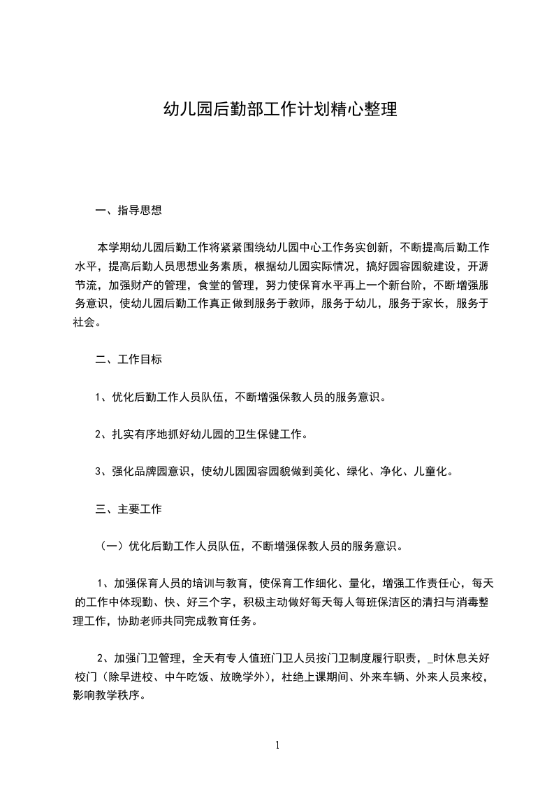 本学期幼儿园后勤工作将紧紧围绕幼儿园中心工作务实创新,不断提高后勤工作水平,提高后勤人员思想业务素质,根据幼儿园实际情况,搞好园容园貌建设,开源节流,加强财产的管理,食堂的管理,努力使保育水平再上一个新台阶,不断增强服务意识,使幼儿园后勤工作真正做到服务于教师,服务于幼儿,服务于家长,服务于社会。