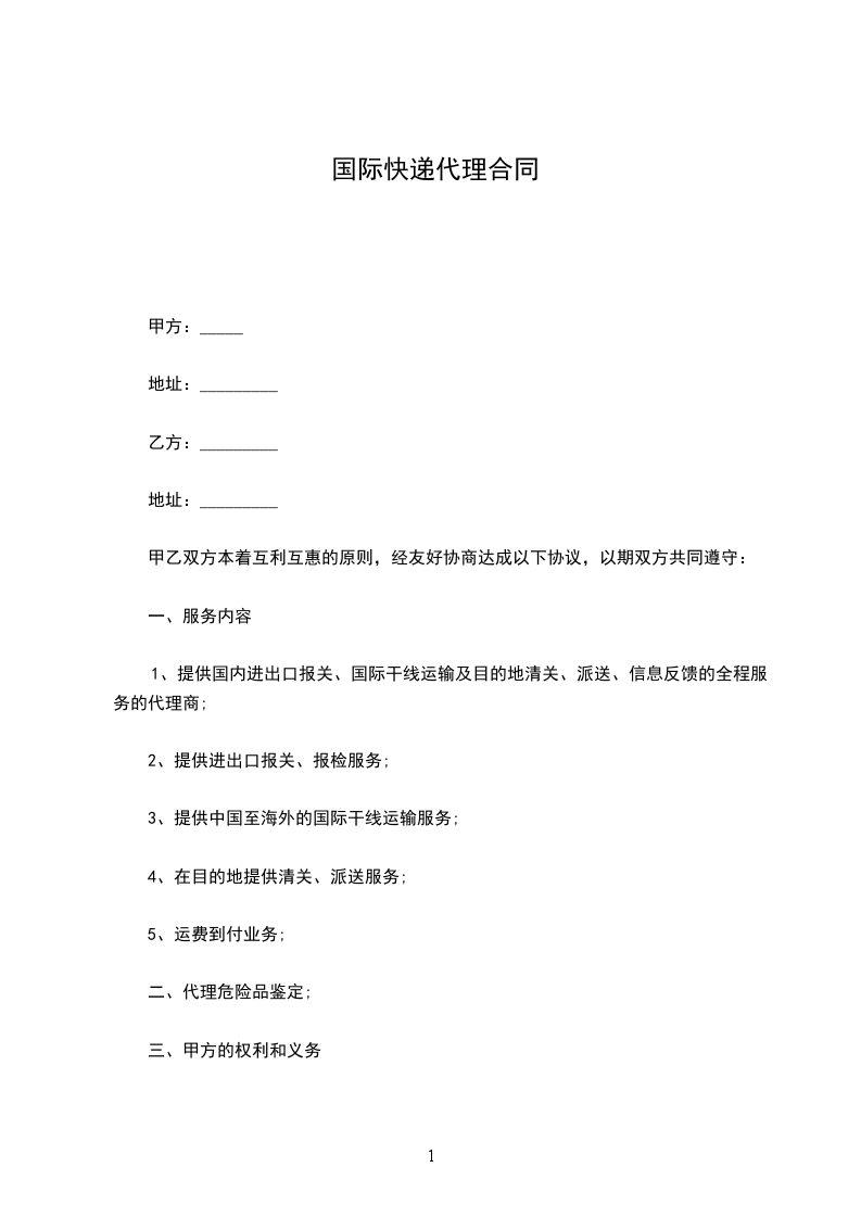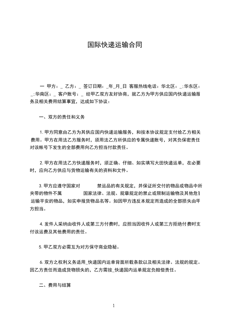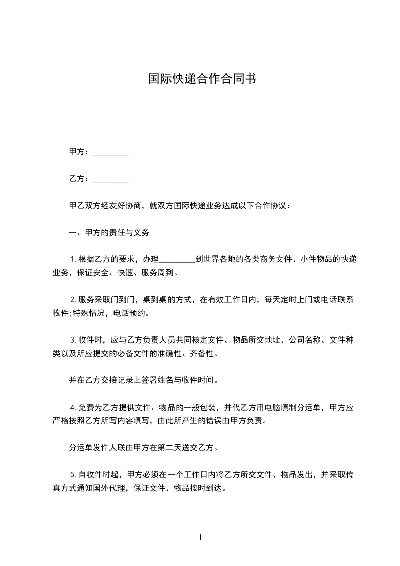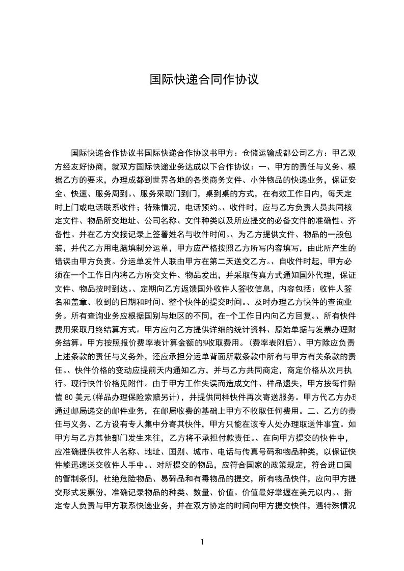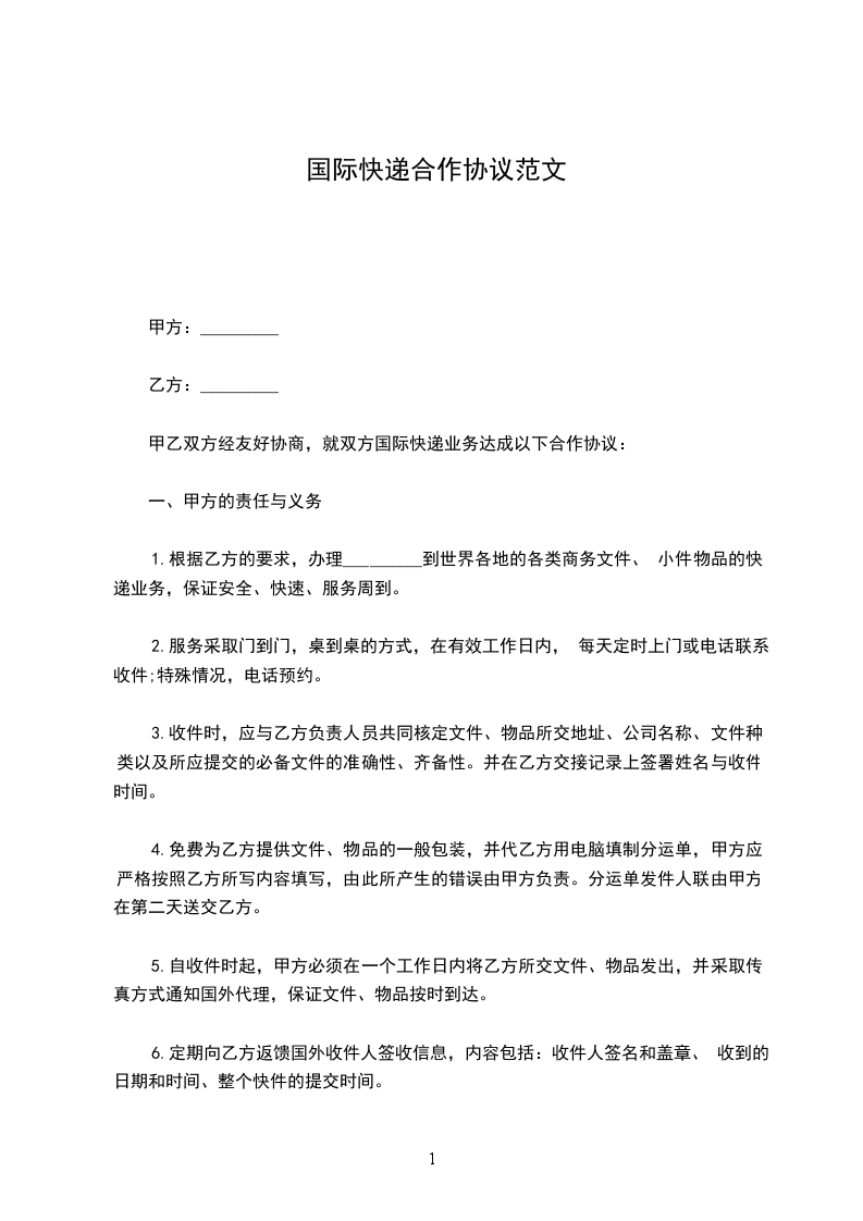 甲乙双方经友好协商,就双方国际快递业务达成以下合作协议: