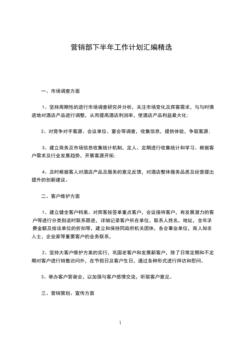 营销部的主要的工作以提高散客入住率的基础上,加大会议及旅游团队的营销工作,虽然酒店地理位置不很理想,但我们存在其他优势,因为大型会议可以享受独处的环境旅游团队为其提供合理的价格和优良服务才是最重要的。同时通过网络订房的客人不容忽视,争取今年网络的入住率有一个新的提高,