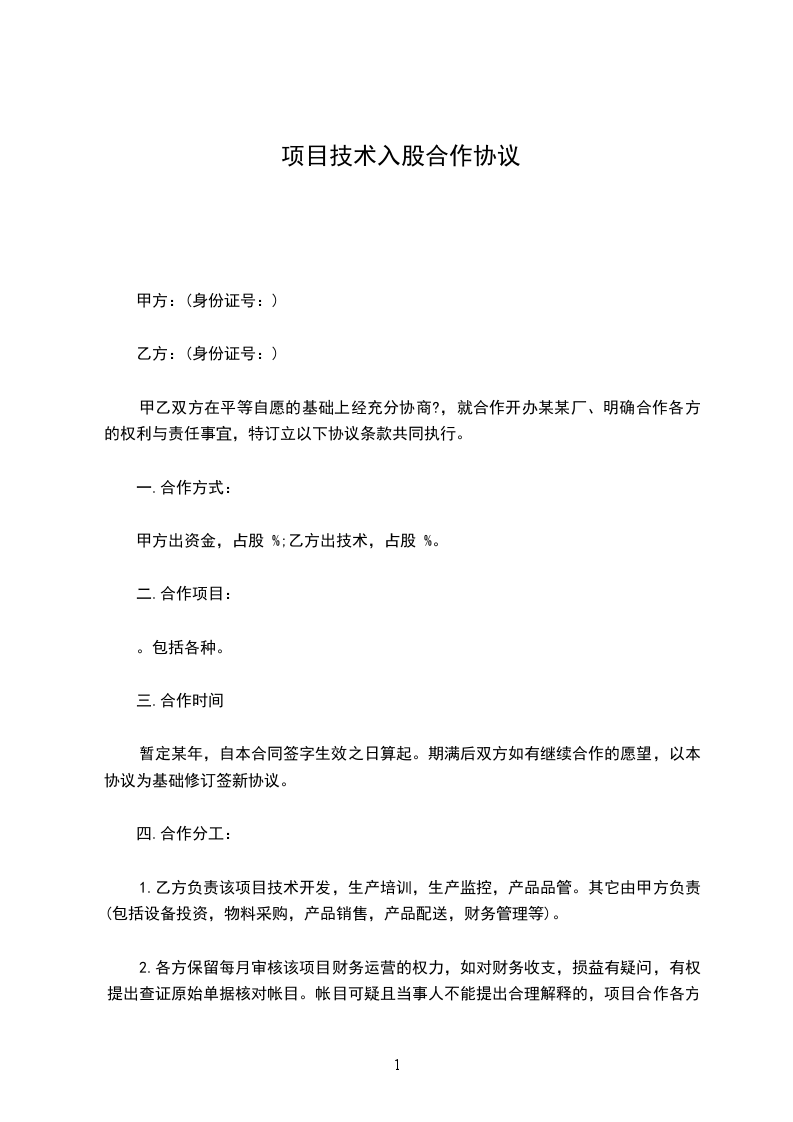 甲方出资金,占股 %;乙方出技术,占股 %。