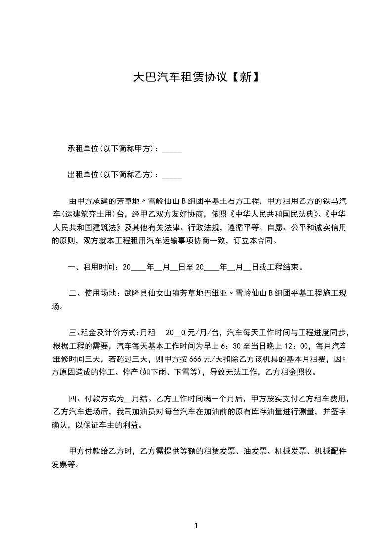 四、付款方式为__月结。乙方工作时间满一个月后,甲方按实支付乙方租车费用,乙方汽车进场后,我司加油员对每台汽车在加油前的原有库存油量进行测量,并签字确认,以保证车主的利益。