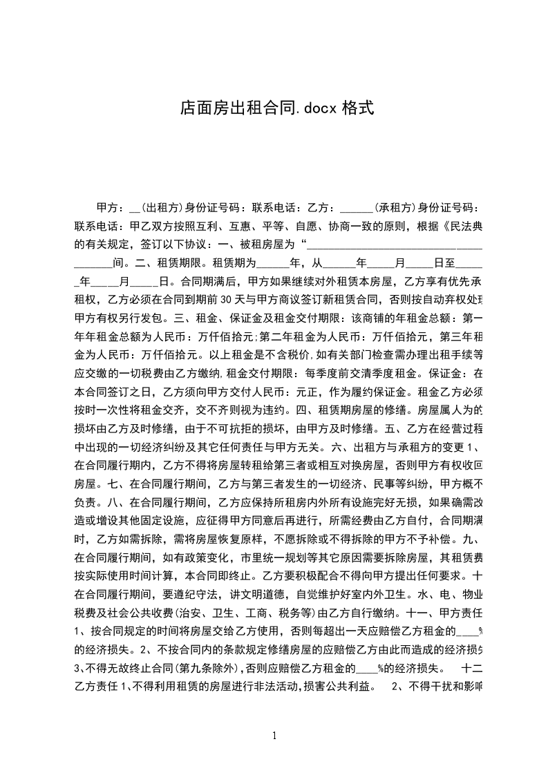 甲方将________________________店面租给乙方______,现经双方协商同意达成以下协议: