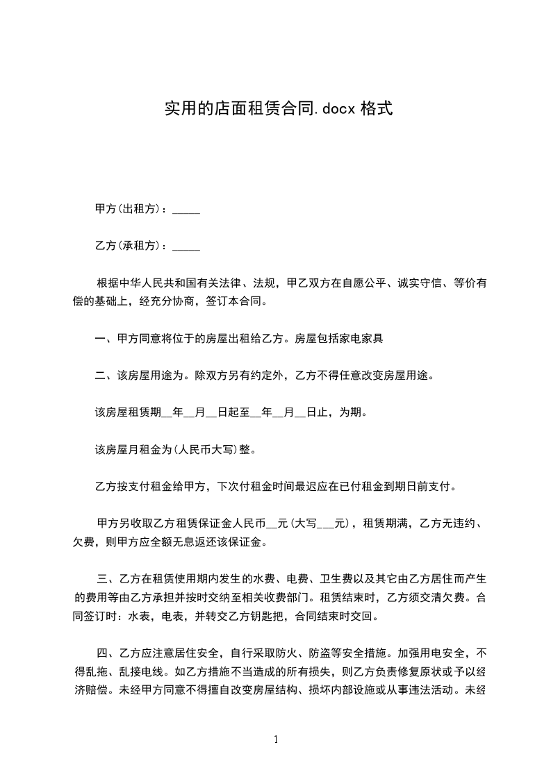一、乙方租甲方店面时间为______年______月______日至______年______月______日止,第一年每月租金为____________元,以后每年分别按每月租金百分之十增值支付,租金等其他契税费用均由乙方负担。