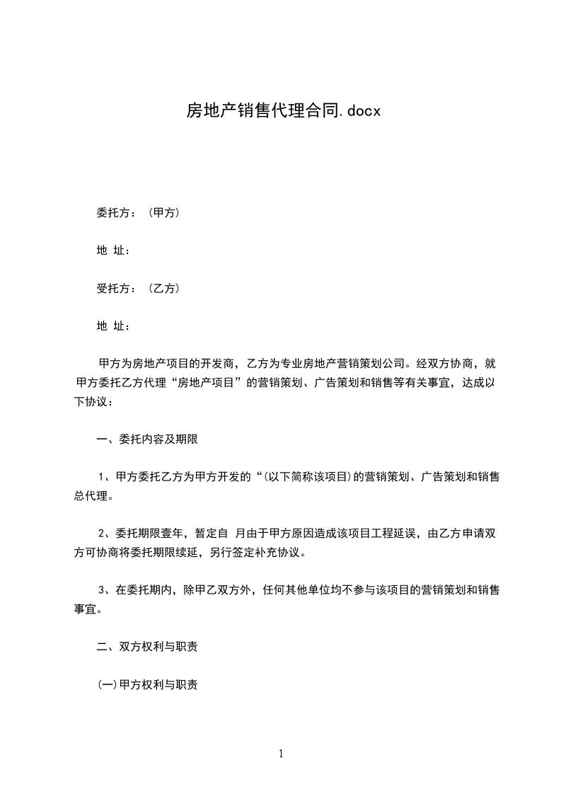 1. 本合同代理期限为 个月,自 年 月 日至 年 月 日。