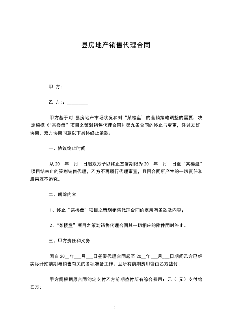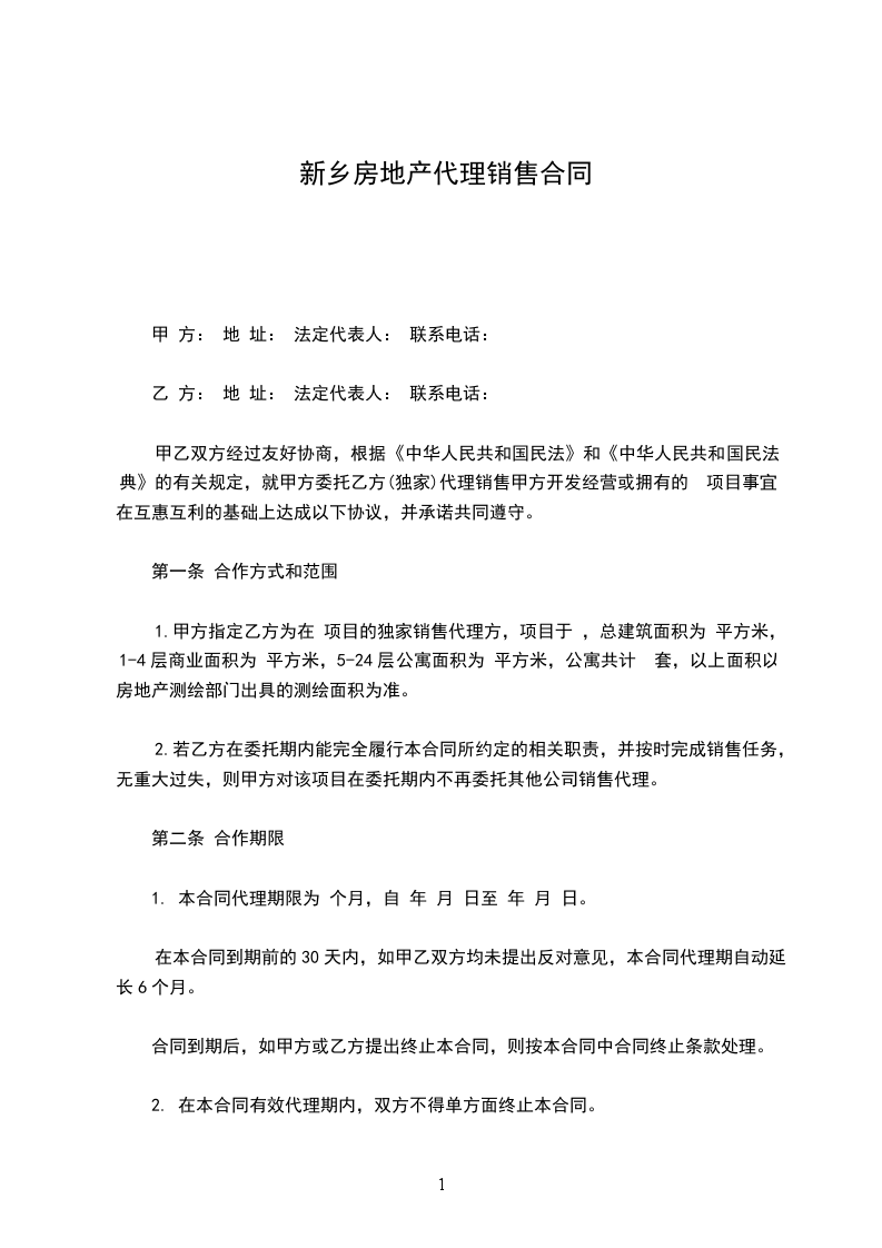 1.甲方指定乙方为在 项目的独家销售代理方,项目于 ,总建筑面积为 平方米,1-4层商业面积为 平方米,5-24层公寓面积为 平方米,公寓共计 套,以上面积以房地产测绘部门出具的测绘面积为准。