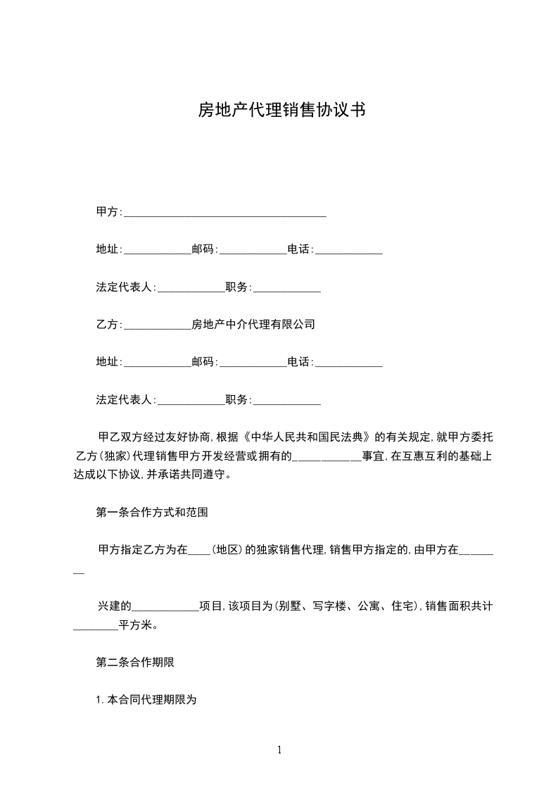 甲乙双方经过友好协商,根据《中华人民共和国民法典》的有关规定,就甲方委托乙方(独家)代理销售甲方开发经营或拥有的 项目事宜,在互惠互利的基础上达成以下协议,并承诺共同遵守。