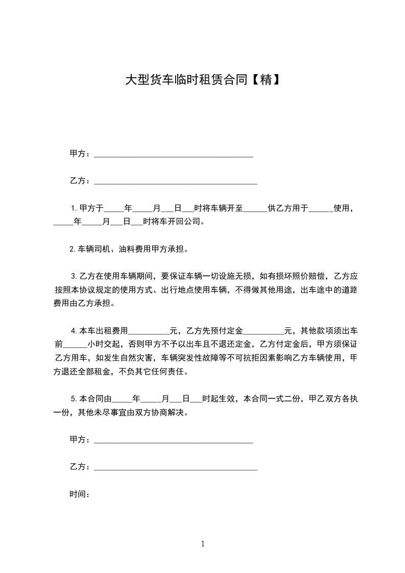 1.甲方于_____年_____月___日___时将车辆开至______供乙方用于______使用,_____年_____月___日___时将车开回公司。