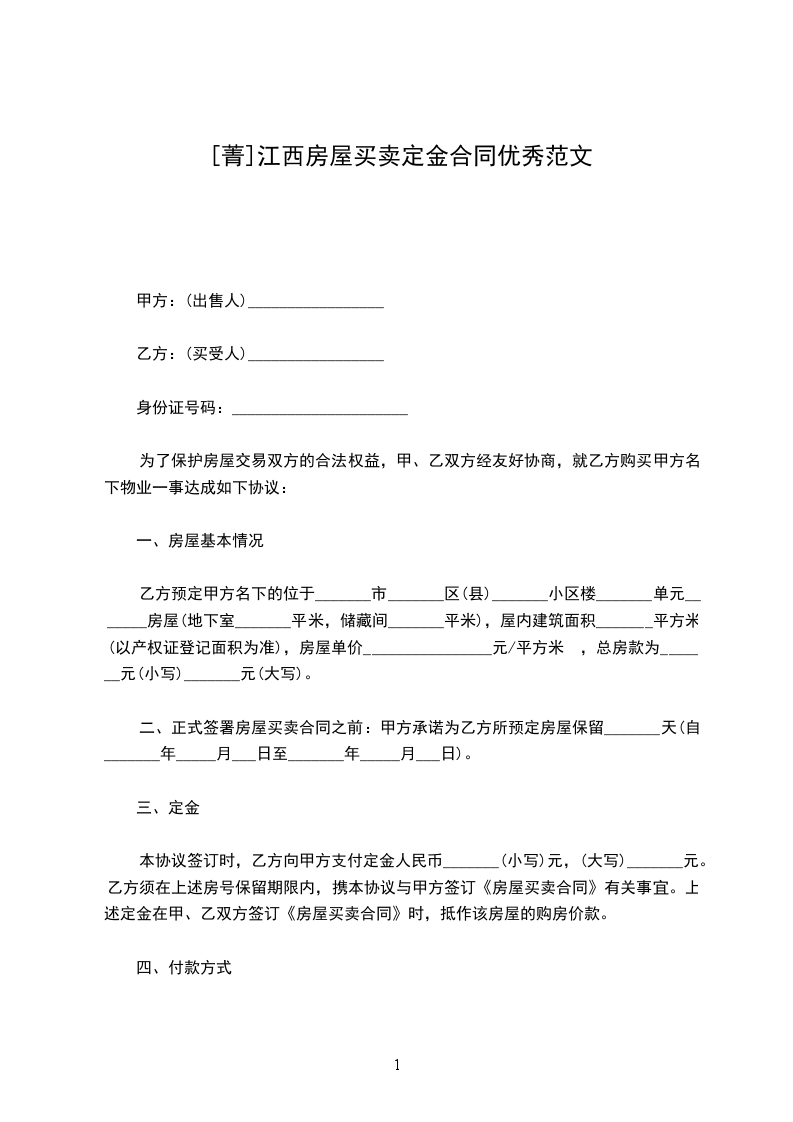四、租房押金:______乙方应于签约同时付给甲方押金元,到期结算,多余归还。