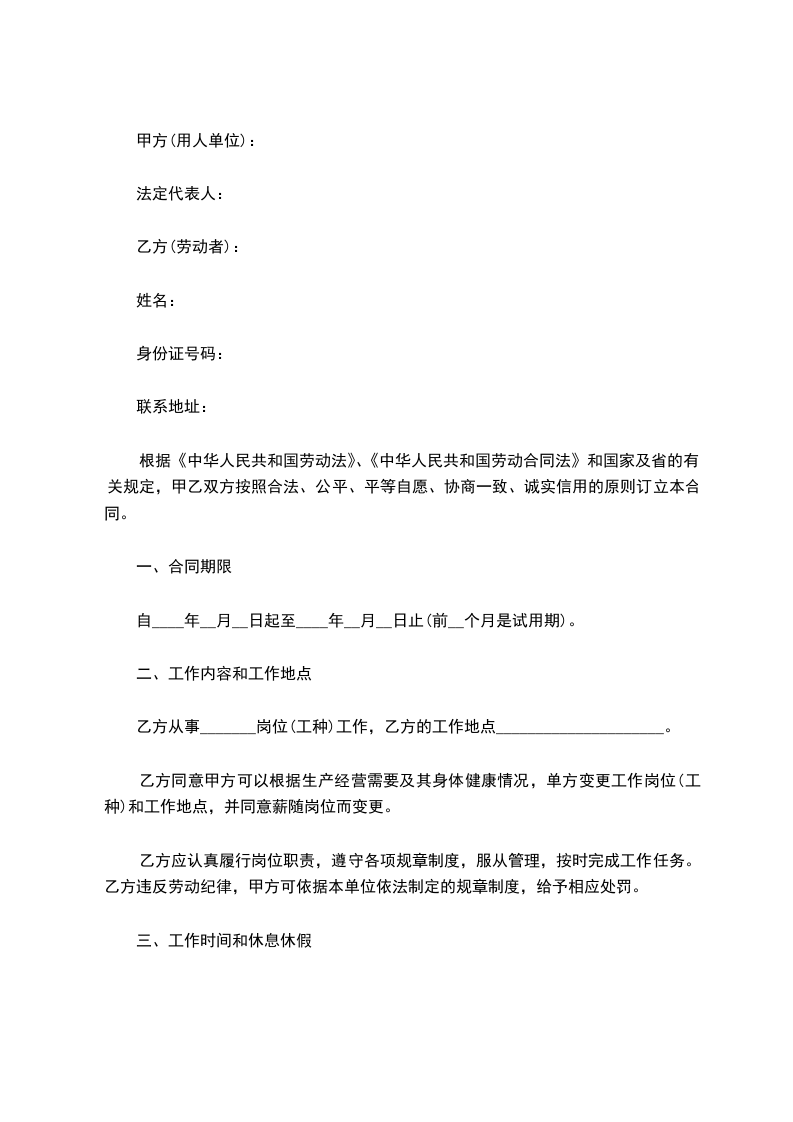 二、工作内容及工作地点:甲方因工作需要,在合法的前提下有权对乙方工作岗位和工作地点,进行适当调整,乙方应当服从。
