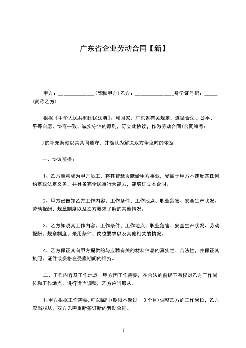 根据《中华人民共和国民法典》、和国家、广东省有关规定,遵循合法、公平、平等自愿、协商一致、诚实守信的原则,订立此协议,作为劳动合同(合同编号: