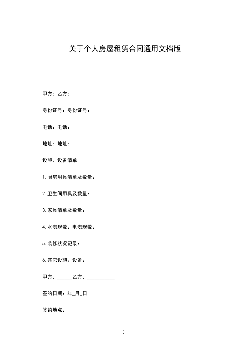 一、房屋地址:_____________区_____________幢____室内的一间单间。用于普通住房。