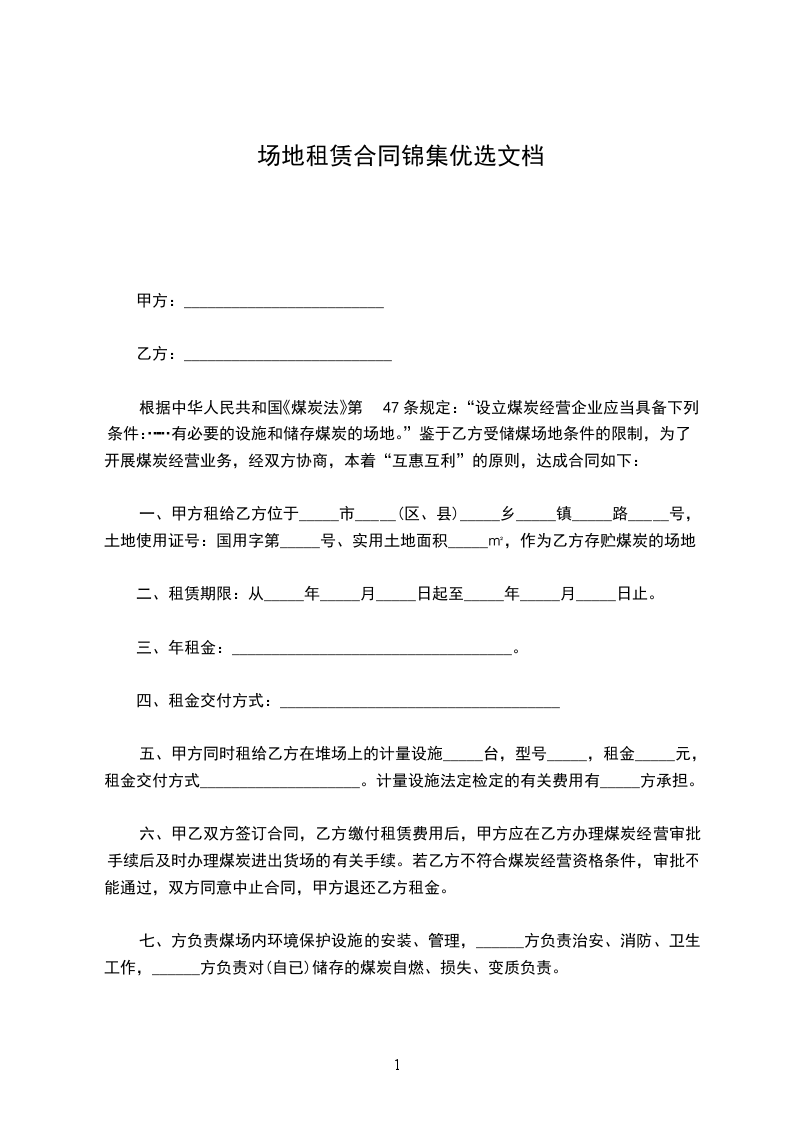 一、甲方租给乙方位于_____市_____(区、县)_____乡_____镇_____路_____号,土地使用证号:国用字第_____号、实用土地面积_____㎡,作为乙方存贮煤炭的场地。