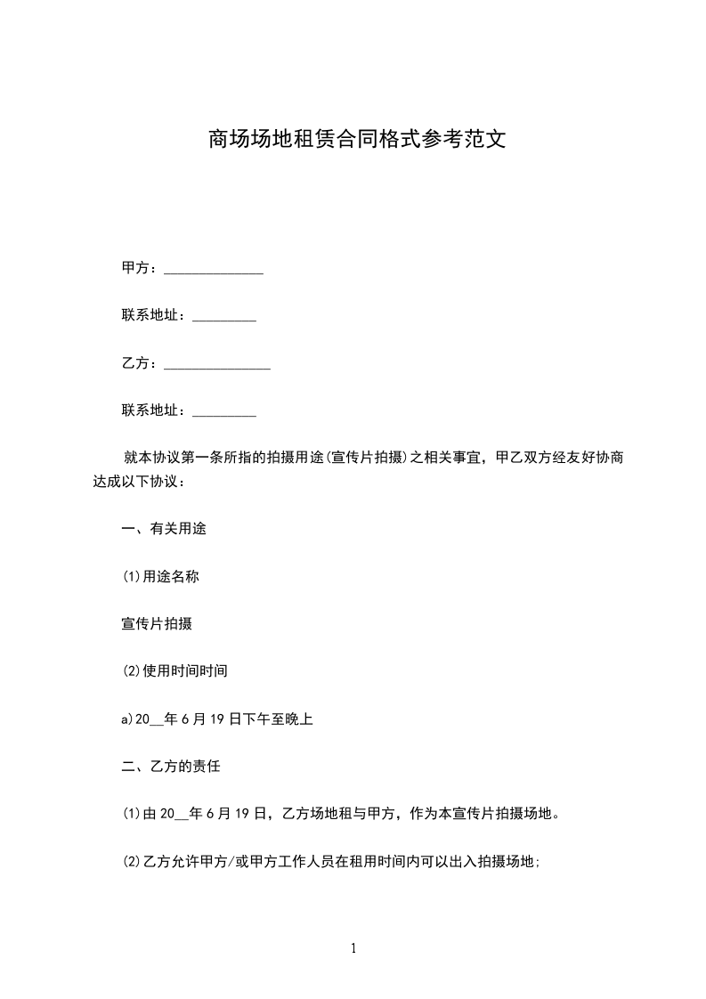 (1)由20__年6月19日,乙方场地租与甲方,作为本宣传片拍摄场地。