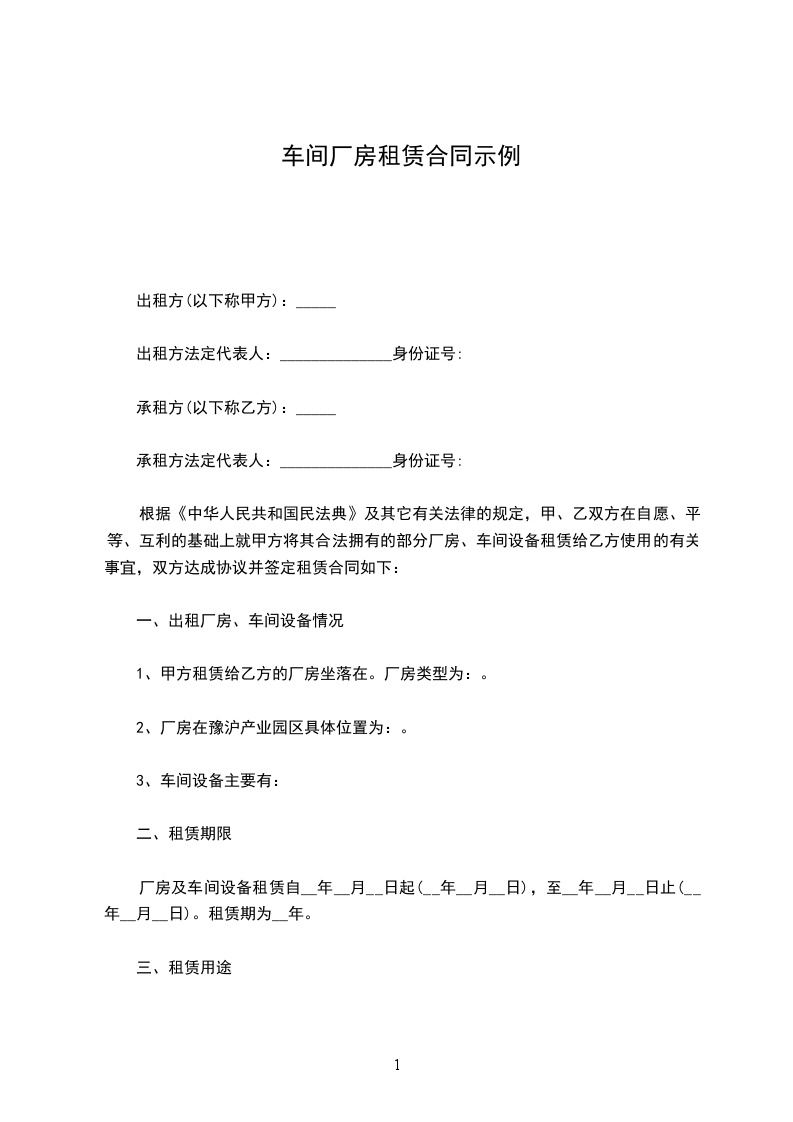 1、甲、乙双方约定,该厂房及车间设备租赁年租金为__元整(元)。