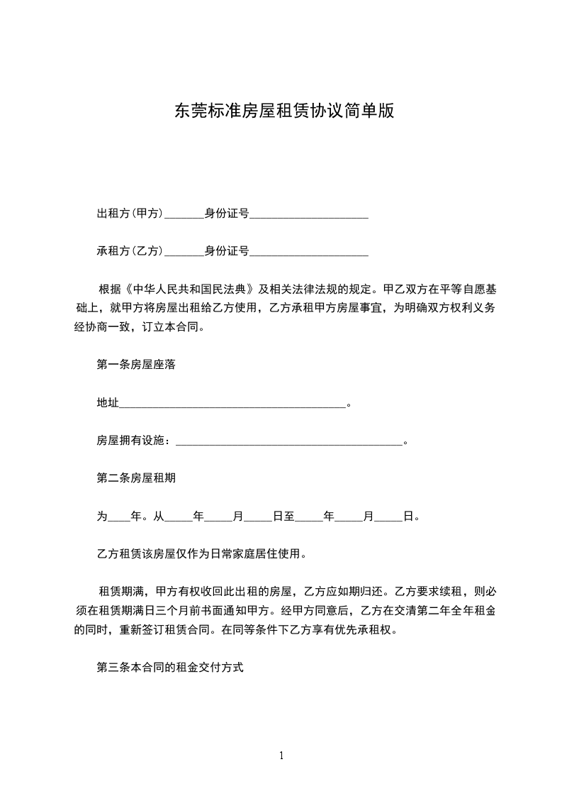 承租方(乙方)_______身份证号_____________________