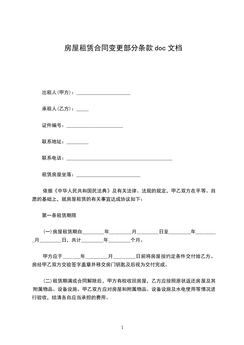 鉴于:______乙方工作需要,增加一间租房。甲乙双方本着互利互惠的原则,经友好协商,依据实际情况,在原合同基础上变更合同条款部分内容,特订立以下补充协议。