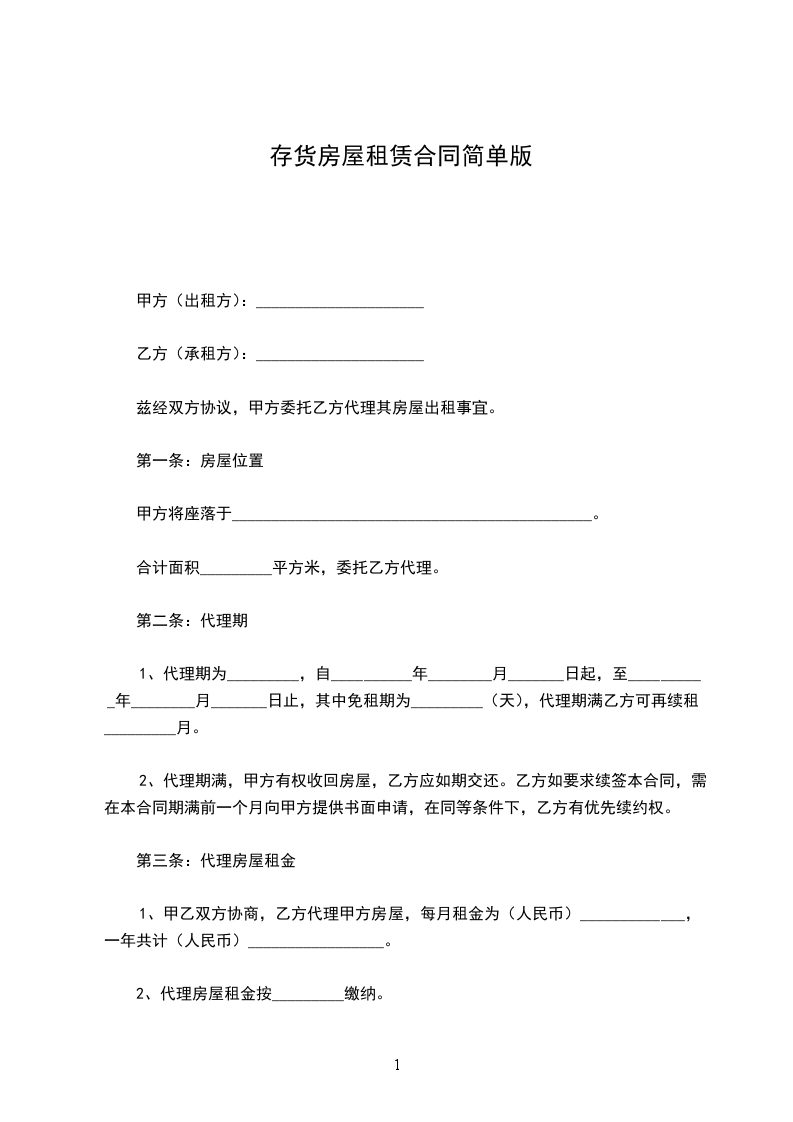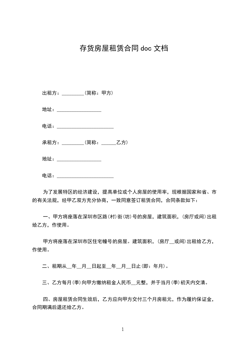 一、甲方将座落在深圳市区路(村)街(坊)号的房屋,建筑面积,(房厅或间)出租给乙方,作使用。