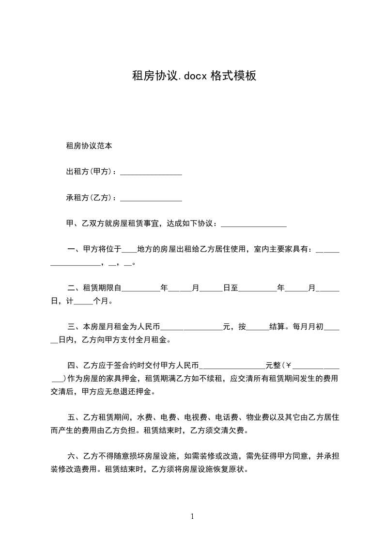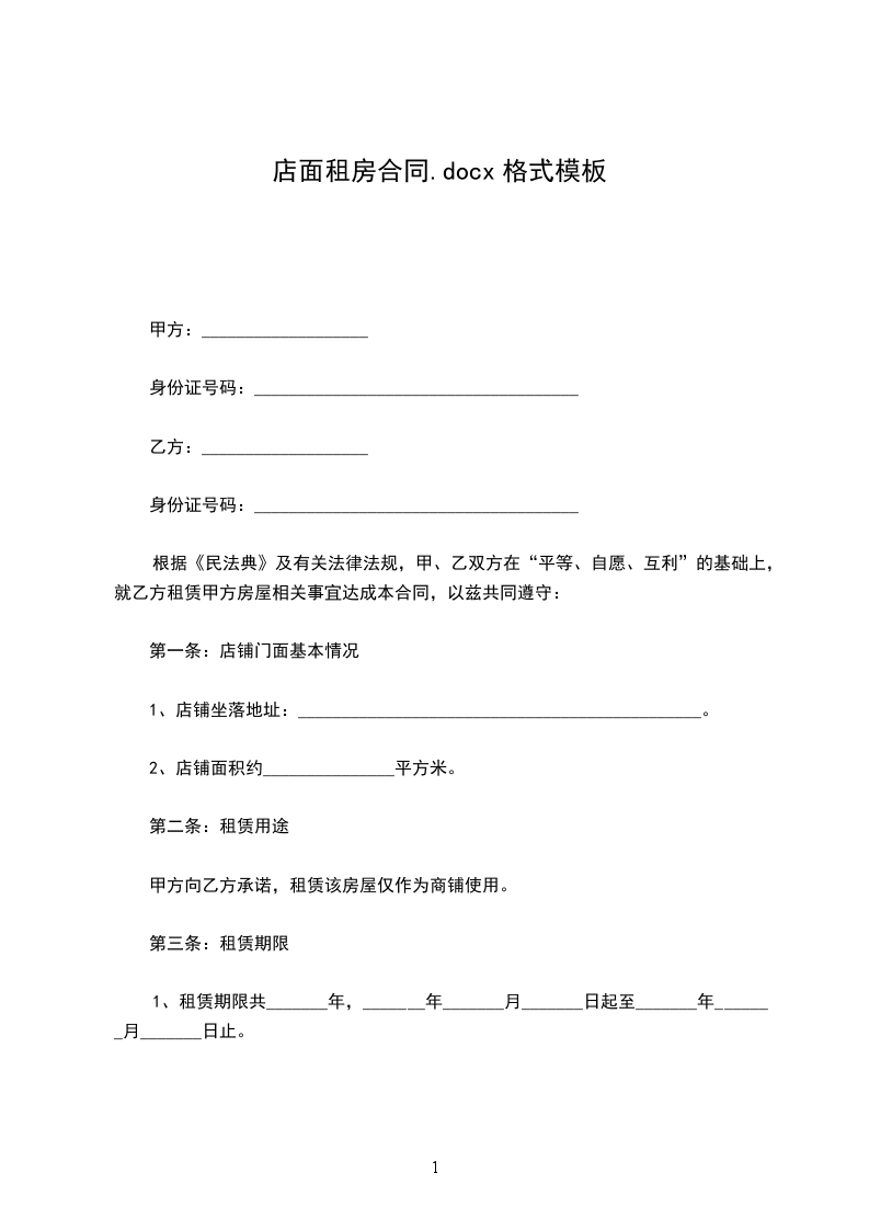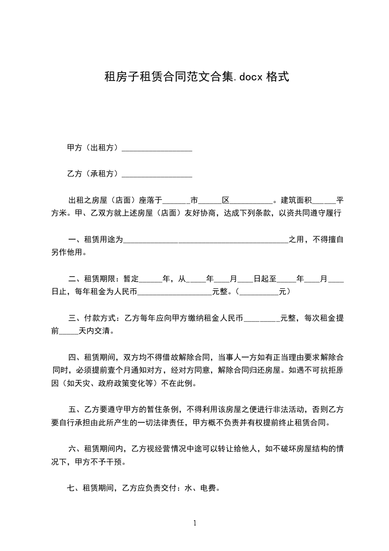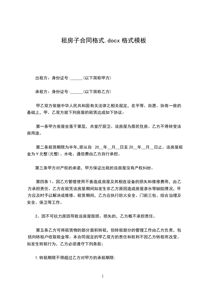承租方:身份证号:______(以下简称乙方)