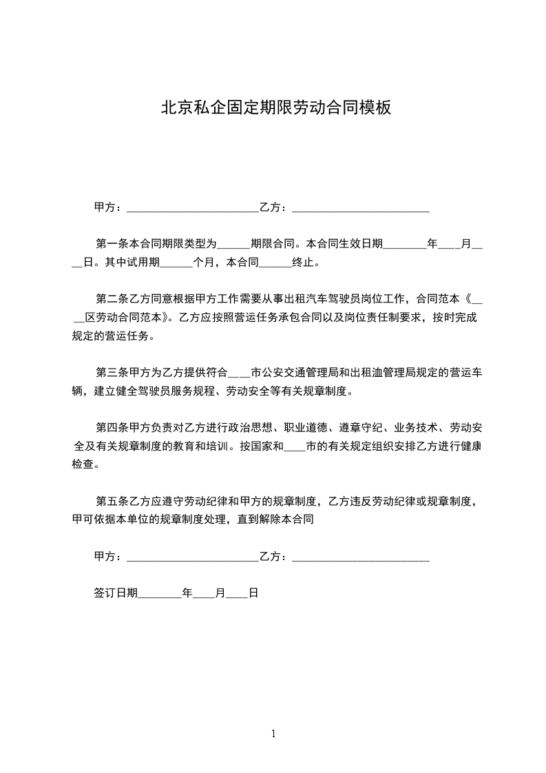 第二条乙方同意根据甲方工作需要从事出租汽车驾驶员岗位工作,合同范本《____区劳动合同范本》。乙方应按照营运任务承包合同以及岗位责任制要求,按时完成规定的营运任务。