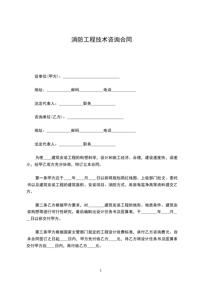 1.乙方如不按本合同规定的时间交付设计任务书及匡算表,迟延一天,按总咨询费金额罚款____‰。