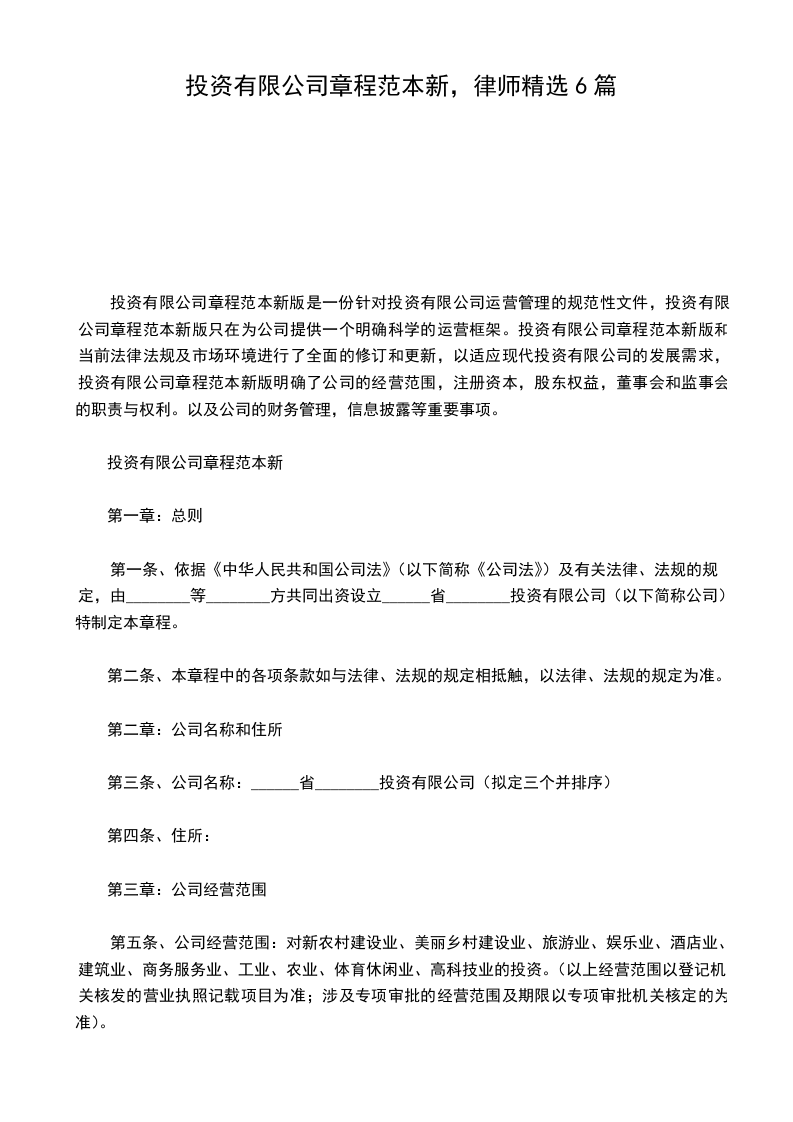 第一条 为规范公司的行为,保障公司股东的合法权益,根据《中华人民共和国公司法》和有关法律、法律规定,结合公司的实际情况,特制订本公司章程范本。