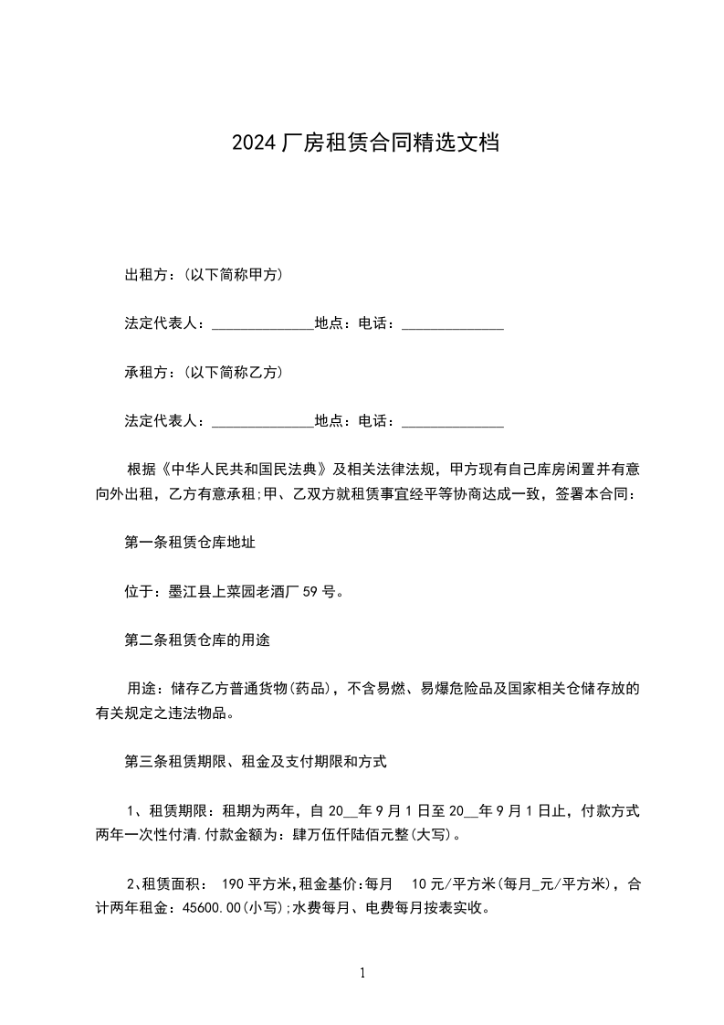 2、租赁面积:190平方米,租金基价:每月10元/平方米(每月_元/平方米),合计两年租金:45600.00(小写);水费每月、电费每月按表实收。